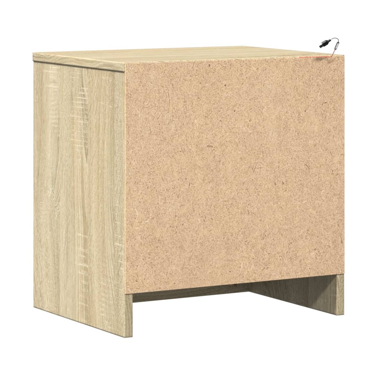 Con un diseño elegante, estas mesitas de noche encajan fácilmente en tu dormitorio o sala de estar y agregan un encanto atemporal a tu decoración. Material duradero:La madera de ingeniería tiene una calidad excepcional, con una superficie lisa y también con fuerza, estabilidad y resistencia a la humedad.Amplio espacio de almacenamiento: La mesita de noche con cajón ofrece un amplio espacio de almacenamiento para mantener tus diversos artículos de uso diario bien organizados y al alcance.Luces LED RGB para un ambiente agradable: Esta mesa auxiliar cuenta con luces LED que se pueden ajustar fácilmente para crear un espectáculo de luces personalizado. Puedes personalizar los modos, los colores y el brillo para mejorar el ambiente de tu hogar.Fácil de mantener: Gracias a su superficie lisa, el armario auxiliar es fácil de limpiar con un paño húmedo y requiere menos mantenimiento. Información útil:El producto tiene un conector USB que necesita una fuente de alimentación USB certificada de 5 V (no incluida).