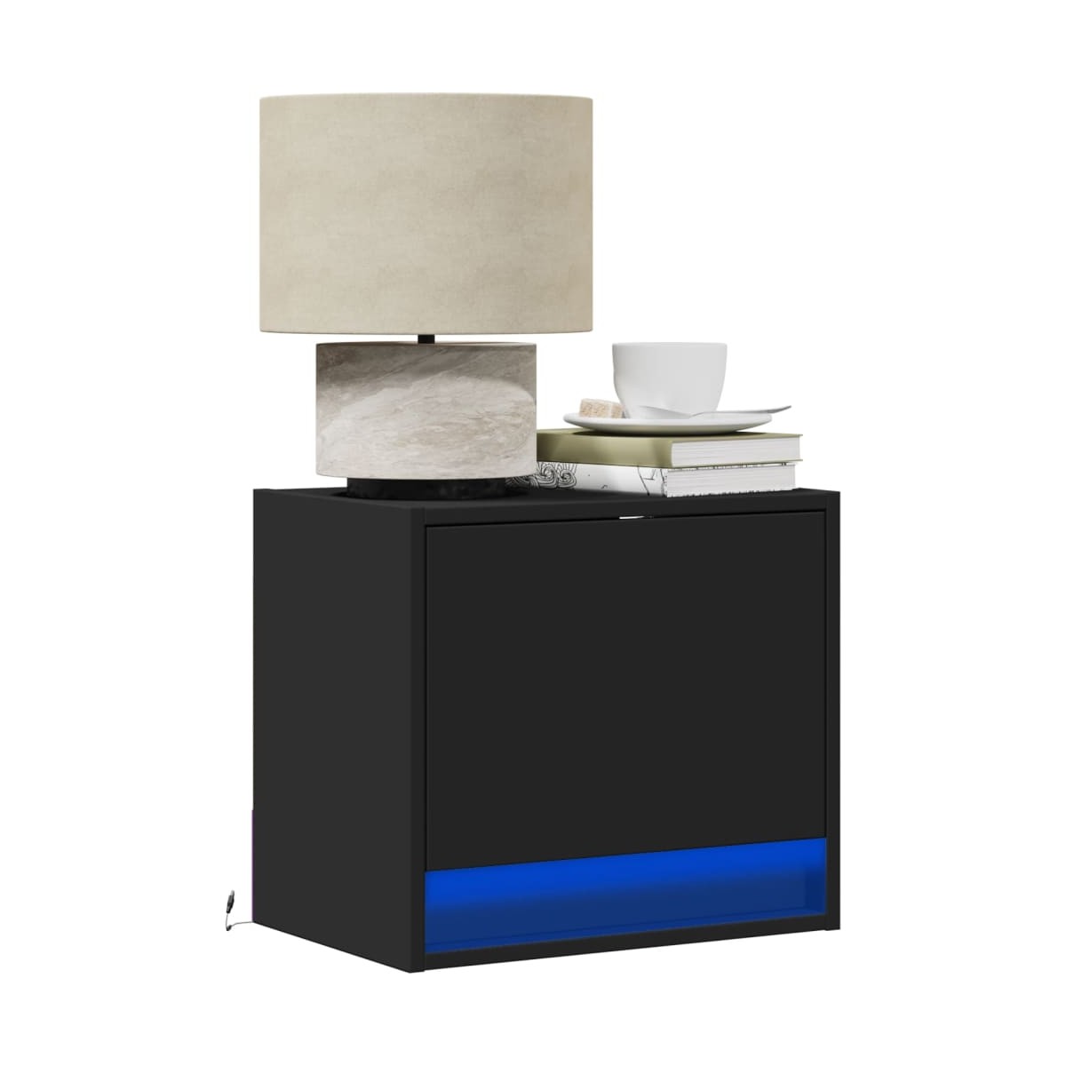 ¡Mejora tu dormitorio con estas mesitas de noche montadas en la pared con luces LED! ¡Complementan fácilmente cualquier estilo de muebles de tu hogar! Material estable y duradero: La madera de ingeniería es un material duradero y estable con una superficie lisa que es resistente a la humedad, la deformación y la rotura, lo que la convierte en una opción fiable para una variedad de proyectos.Luces LED RGB para un ambiente agradable: Esta mesita de noche cuenta con luces LED que se pueden ajustar fácilmente para crear un espectáculo de luces personalizado. Puedes personalizar los modos, los colores y el brillo para mejorar el ambiente de tu hogar.Amplio espacio de almacenamiento: Esta mesita de noche tiene 1 cajón, lo que proporciona un amplio espacio para mantener tus revistas, libros, mandos a distancia y otros objetos pequeños bien organizados y al alcance.Ahorro de espacio: El diseño de pared aprovecha al máximo el espacio no utilizado de la pared, convirtiéndolo en una zona de almacenamiento compacta y eficiente. Información útil:Los tornillos y los tacos para el interior de la pared no están incluidos. Te recomendamos buscar y utilizar tornillos y tacos adecuados específicamente para tus paredes. Si no estás seguro, puedes consultar con un profesional. Lee y sigue cada paso de las instrucciones.El producto tiene un conector USB que necesita una fuente de alimentación USB certificada de 5 V (no incluida).