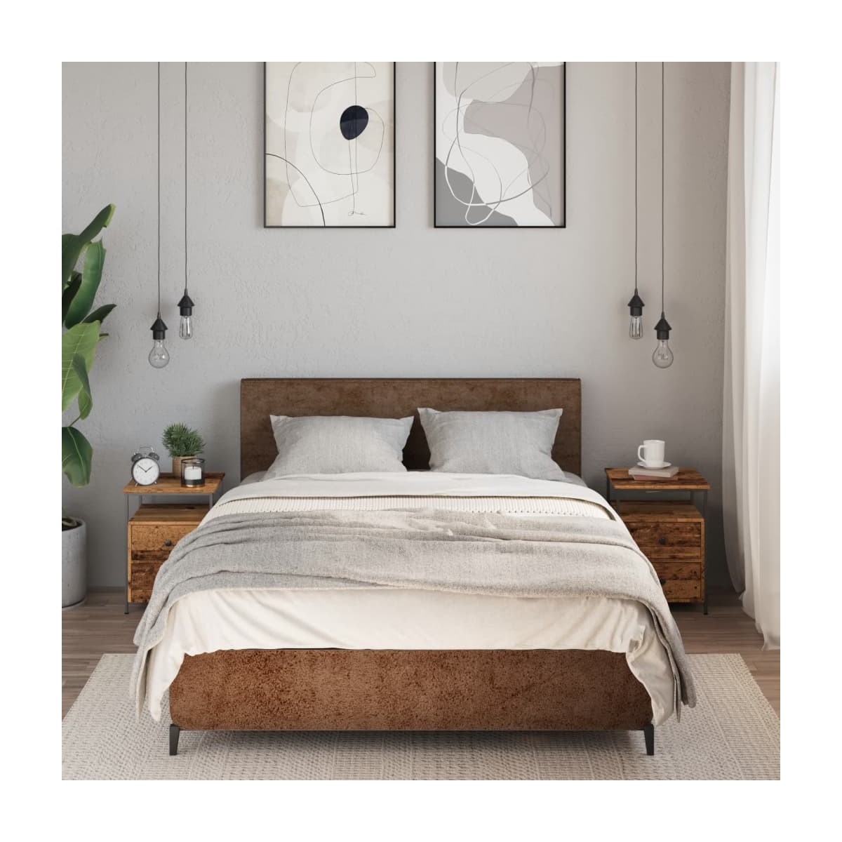 Estas modernas mesitas de noche, con un diseño elegante y clásico, están destinadas a mejorar el interior de la casa. Material duradero: La madera de ingeniería es de una buena calidad con superficie lisa y también se caracteriza por su fuerza, estabilidad y resistencia a la humedad. Hecha de madera de ingeniería, la mesita de noche es fácil de limpiar con un paño húmedo.Amplio espacio de almacenamiento: La mesita de noche tiene 2 cajones y un compartimento, lo que proporciona un amplio espacio para mantener tus revistas, libros, mandos a distancia y otros artículos pequeños bien organizados y al alcance.Superficie resistente: La robusta superficie de la mesilla de noche es ideal para colocar objetos decorativos, marcos de fotos o plantas.Patas de metal: Las patas de metal le dan un estilo moderno y tranquilo a la casa mientras garantizan su estabilidad. Advertencia:Para evitar que vuelque, este producto debe usarse con el dispositivo de fijación a la pared suministrado.
