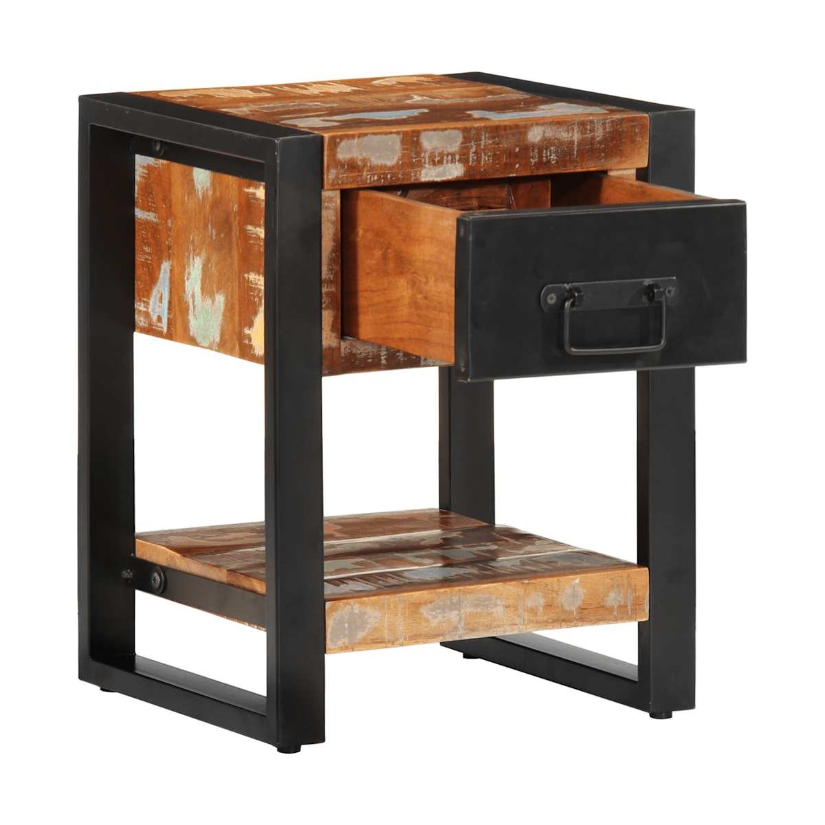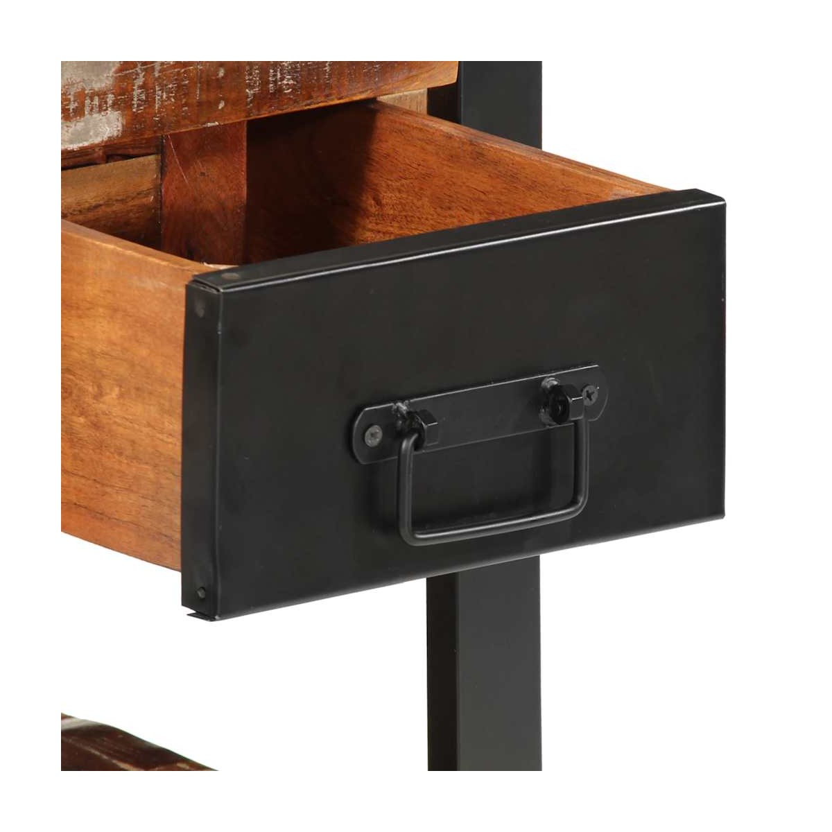Esta mesita de noche, con un diseño elegante, es un aporte atemporal para la decoración de tu hogar. Madera maciza de mango: La madera maciza de mango es una madera dura, tropical y resistente, que sirve para fabricar muebles robustos. Las bonitas vetas de la madera hacen que cada mueble sea ligeramente diferente al resto. Hecho de madera maciza de mango, el mueble es duradero y estable. Amplio espacio de almacenaje: La mesita de noche ofrece un práctico espacio de almacenaje para mantener las cosas organizadas y al alcance de la mano. Superficie estable: La superficie de este mueble auxiliar es perfecta para exponer objetos decorativos, marcos de fotos y plantas. Patas resistentes: Las patas de hierro aumentan la robustez y estabilidad de los muebles del dormitorio. Advertencia:Para evitar que vuelque, este producto debe usarse con el dispositivo de fijación a la pared suministrado.