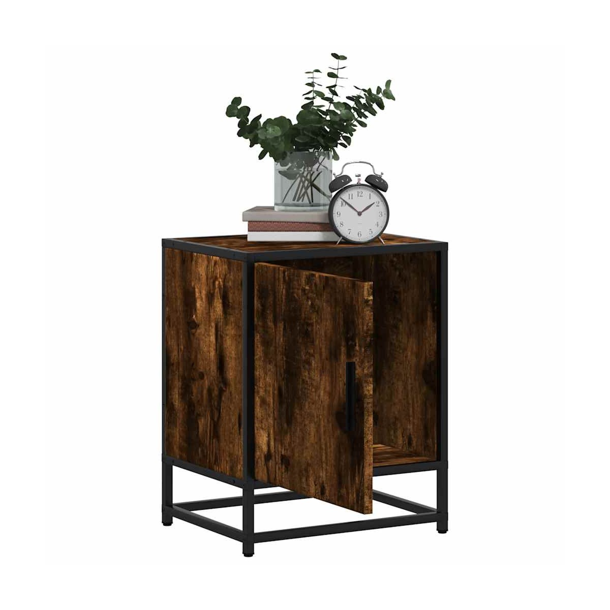 Estas mesitas de noche, con un diseño elegante, son un aporte atemporal para la decoración de tu hogar. Material estable y duradero: La madera de ingeniería es un material duradero y estable con una superficie lisa que es resistente a la humedad, la deformación y la rotura, lo que la convierte en una opción fiable para una variedad de proyectos.Estructura estable y duradera: El material metálico es resistente, estable y duradero, lo que lo convierte en la opción ideal para una amplia gama de aplicaciones, desde la fabricación de muebles hasta la construcción.Amplio espacio de almacenamiento: La mesilla de noche ofrece un amplio espacio de almacenamiento para revistas, libros, gafas y otros objetos esenciales para la hora de dormir, manteniéndolos organizados y al alcance de la mano.Superficie resistente: La robusta parte superior de la mesilla de noche es perfecta para colocar lámparas de mesa, despertadores, libros, marcos de fotos, pequeñas plantas en macetas, adornos u otros objetos esenciales.Puerta práctica: la puerta del armario de cama proporciona un espacio de almacenamiento cerrado para mantener tus pertenencias organizadas, protegidas y fuera de la vista. Advertencia:Para evitar que vuelque, este producto debe usarse con el dispositivo de fijación a la pared suministrado.