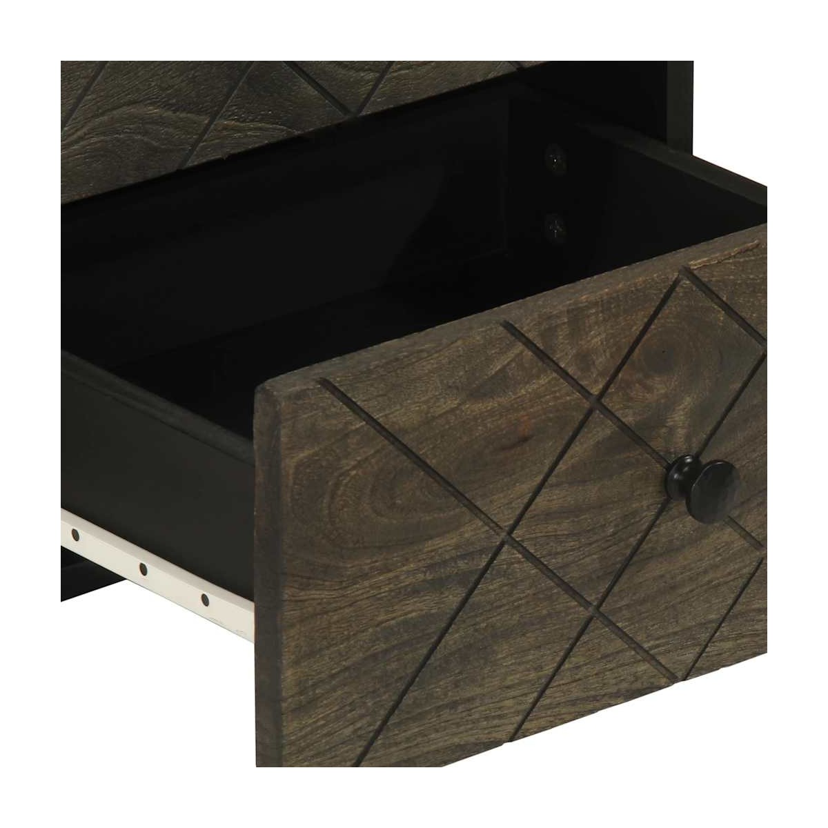 ¡Introduce un aire de encanto en la decoración de tu habitación con esta elegante mesita de noche! Material robusto y estable: La madera maciza de mango, una madera dura tropical robusta, es muy apreciada para la fabricación de muebles por su excepcional durabilidad y resistencia. Las bonitas vetas de la madera hacen que cada mueble sea ligeramente diferente al resto.Patas de metal: la mesita de noche está sostenida por resistentes patas de metal, lo que garantiza estabilidad, seguridad y firmeza.Amplio espacio de almacenamiento: La mesilla de noche ofrece un amplio espacio de almacenamiento para revistas, libros, gafas y otros objetos esenciales para la hora de dormir, manteniéndolos organizados y al alcance de la mano.Superficie resistente: La robusta parte superior de la mesilla de noche es perfecta para colocar lámparas de mesa, despertadores, libros, marcos de fotos, pequeñas plantas en macetas, adornos u otros objetos esenciales. Información útil:Cada artículo es único, con variaciones de color y veta. La entrega es aleatoria garantizando la exclusividad y la individualidad del producto.