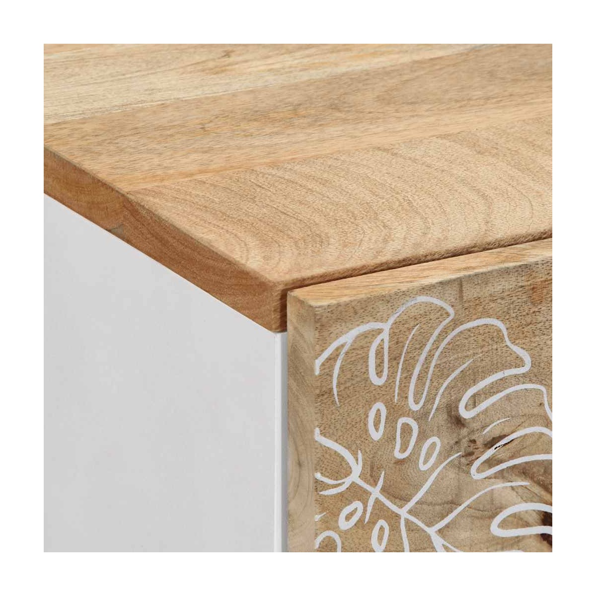 - Material: Mango natural con pantalla de pintura blanca, madera de ingeniería, metal.