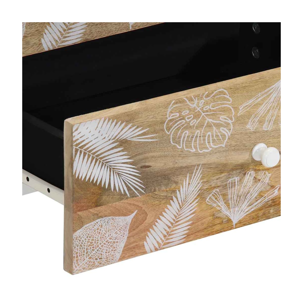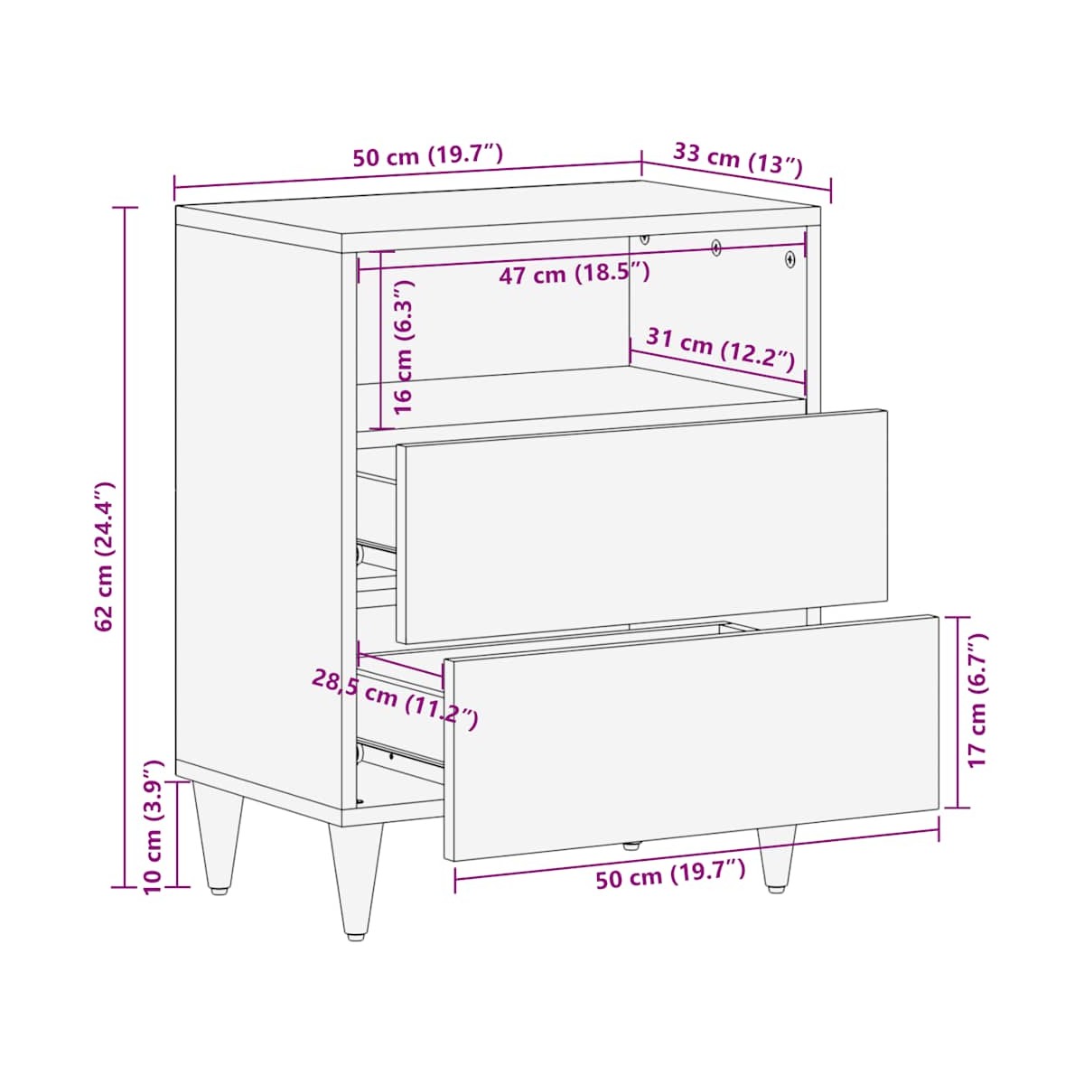 Esta mesita de noche, con un diseño elegante, es un aporte atemporal para la decoración de tu hogar. Material robusto y estable: La madera maciza de mango, una madera dura tropical robusta, es muy apreciada para la fabricación de muebles por su excepcional durabilidad y resistencia. Las bonitas vetas de la madera hacen que cada mueble sea ligeramente diferente al resto.Amplio espacio de almacenamiento: la mesita de noche ofrece un amplio espacio de almacenamiento para revistas, libros, vasos y otros elementos esenciales para la hora de dormir, manteniéndolos organizados y al alcance.Uso versátil: Esta mesita de noche no es solo para el dormitorio, también se puede utilizar como mesa auxiliar en la sala de estar o espacio de almacenamiento adicional en cualquier habitación, adaptándose perfectamente a sus necesidades.Patas de madera: Esta cama está sostenida por robustas patas, que garantizan estabilidad, seguridad y firmeza. Información útil:Cada artículo es único, con variaciones de color y veta. La entrega es aleatoria garantizando la exclusividad y la individualidad del producto. Advertencia:Para evitar que vuelque, este producto debe usarse con el dispositivo de fijación a la pared suministrado.