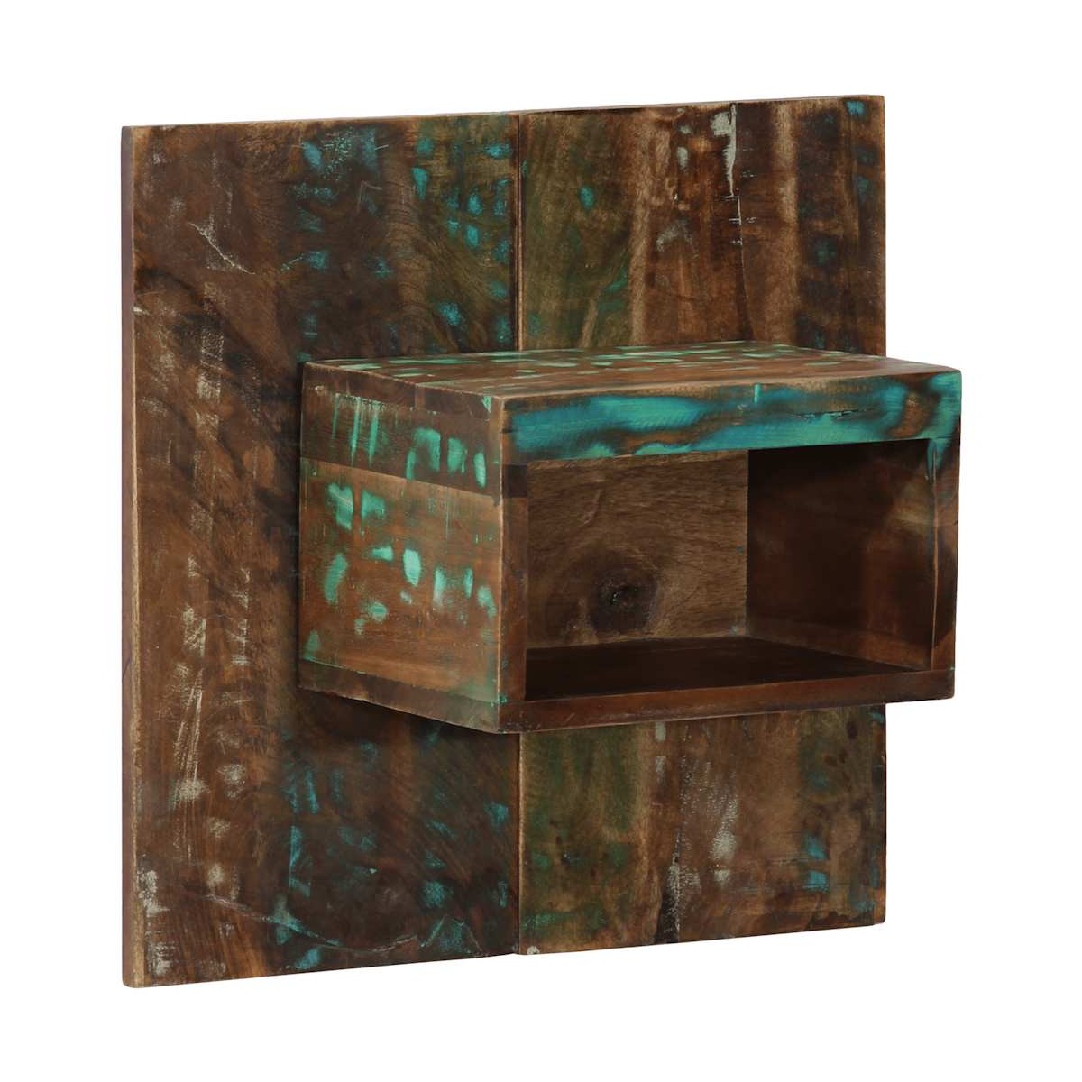 ¡Mejora tu dormitorio con esta mesita de noche de pared! ¡Combina fácilmente con cualquier estilo de mobiliario de tu hogar! Material robusto y estable: la madera maciza reciclada consta de maderas reutilizadas como la teca, la madera de mango, la madera de pino y el haya. Dichos materiales proceden de antiguas construcciones como fábricas, cobertizos y barcos. Los signos de desgaste y la estructura visible de la veta dan a cada pieza su propia historia y un aspecto único.Amplio espacio de almacenamiento: la mesita de noche ofrece un amplio espacio de almacenamiento para revistas, libros, vasos y otros elementos esenciales para la hora de dormir, manteniéndolos organizados y al alcance.Diseño de pared: La mesita de noche flotante se puede montar en la pared para agregar espacio de almacenamiento adicional. De esa forma, puedes liberar espacio en el piso y tener tu ambiente ordenado y limpio. Información útil:Cada artículo es único, con variaciones de color y veta. La entrega es aleatoria garantizando la exclusividad y la individualidad del producto.