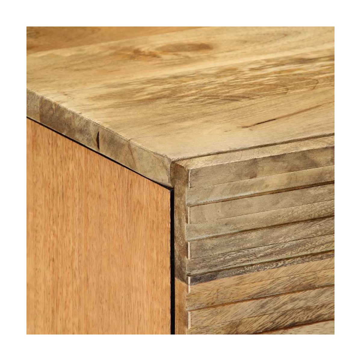 - Material: Mango con acabado marrón desierto con frente CNC, madera de ingeniería, metal.