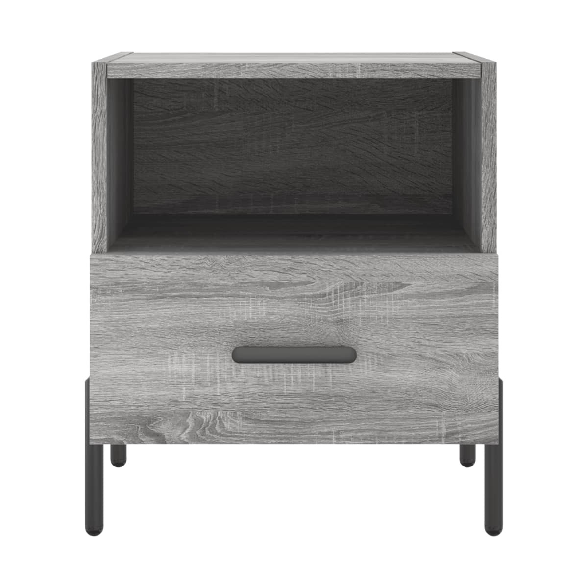 ¡Da un toque de encanto moderno a la casa con estas mesitas de noche! Material duradero: La madera de ingeniería tiene una calidad excepcional, con una superficie lisa y también cuenta con fuerza, estabilidad y resistencia a la humedad. Amplio espacio de almacenaje: La mesita de noche tiene un compartimento y un cajón, por lo que ofrece un amplio espacio de almacenaje para mantener al alcance libros, aparatos multimedia y otros objetos. Función expositora: También puedes colocar tus fotos favoritas, adornos o flores en la superficie de esta mesita auxiliar para alegrarte la vida. Patas de metal: Las patas metálicas añaden un estilo tranquilo a la casa a la vez que garantizan la estabilidad.