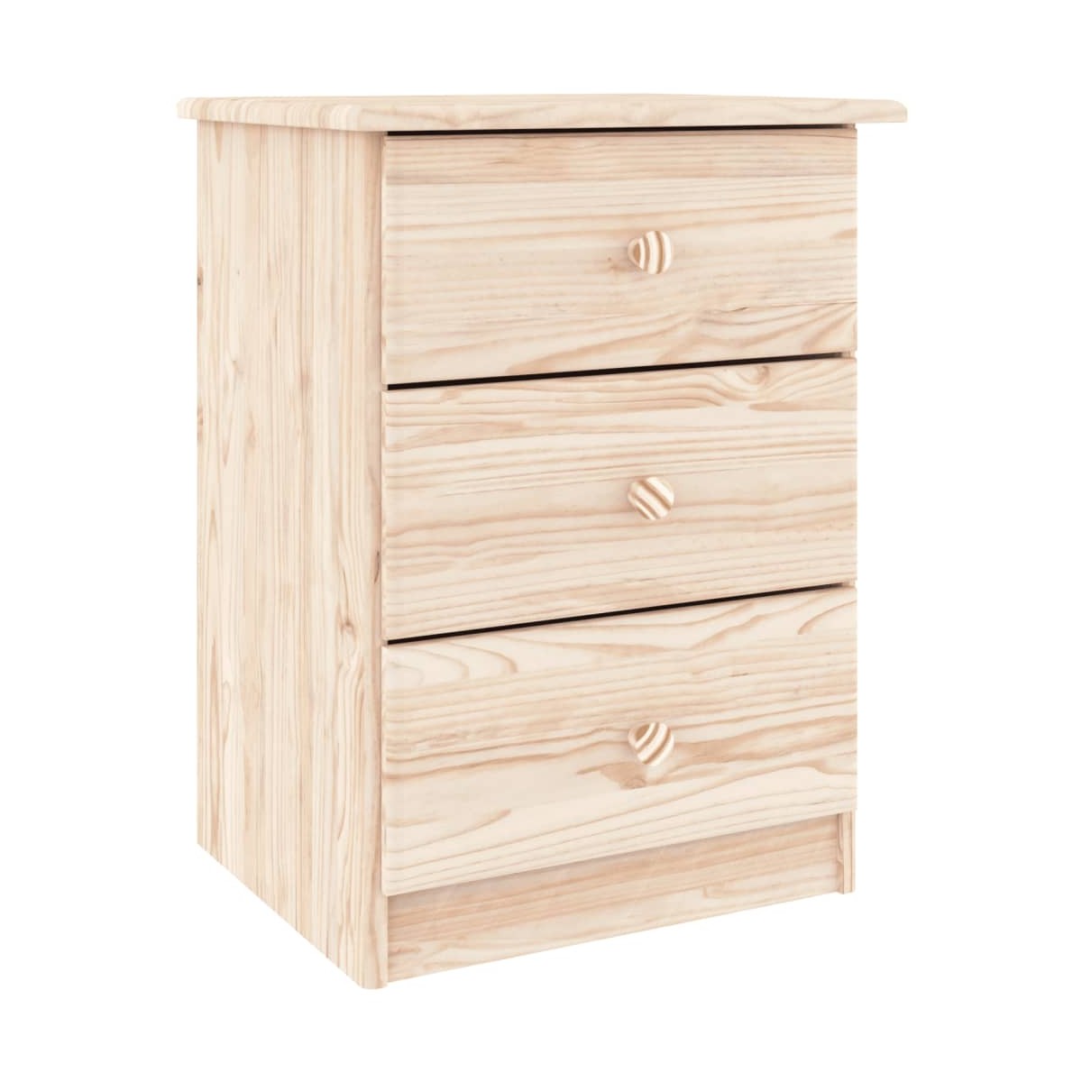 Con un diseño elegante, esta mesita de noche de madera encaja en el dormitorio o el salón con facilidad y añade un encanto atemporal a la casa. Madera maciza de pino: La madera maciza de pino es un hermoso material natural. La madera de pino tiene unas vetas rectas, y los nudos le dan su característico aspecto rústico. Hecha de madera maciza de pino, la mesita de noche es duradera y resistente.Amplio espacio de almacenaje: Los muebles de dormitorio cuentan con 3 prácticos cajones para que guardes a mano las cosas esenciales.Fácil de mantener: La mesita de noche es fácil de limpiar con un paño húmedo y requiere menos mantenimiento.Pomos de madera: El cajón de la mesita de noche viene con pomos de madera que permiten abrirla y cerrarla con facilidad, además de añadir un plus estético.Superficie sin tratar: Como la mesita de noche está fabricada en madera maciza de pino sin acabado, puedes mantener su color natural, pero también puedes pintarla o lacarla como prefieras. Advertencia:Para evitar que vuelque, este producto debe usarse con el dispositivo de fijación a la pared incluido.