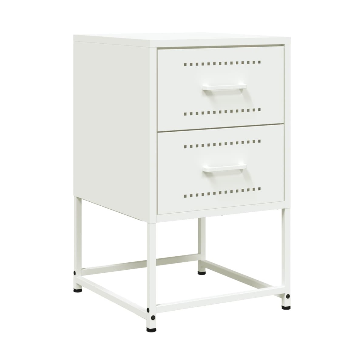 Esta mesita de noche con un diseño industrial es un complemento atemporal para la decoración de la casa. Estructura robusta y estable: El acero es fuerte, estable y duradero, lo que lo convierte en la opción ideal para una amplia gama de aplicaciones, desde la fabricación de muebles hasta la construcción.Amplio espacio de almacenaje: La mesita de noche ofrece un amplio espacio de almacenamiento para tener a mano y bien organizados tus distintos artículos de uso diario.Fácil de limpiar: La mesita de noche de acero es resistente a la humedad y fácil de limpiar con un paño húmedo.Diseño multiusos: Este mueble es ideal como mesita de noche al lado de la cama, como mesita al lado del sofá del salón o como mueble adicional para el estudio.Función expositora: También puedes colocar tus fotos favoritas, adornos o flores en la superficie de esta mesita de noche para alegrarte la vida. Advertencia:Para evitar que vuelque, este producto debe usarse con el dispositivo de fijación a la pared suministrado.