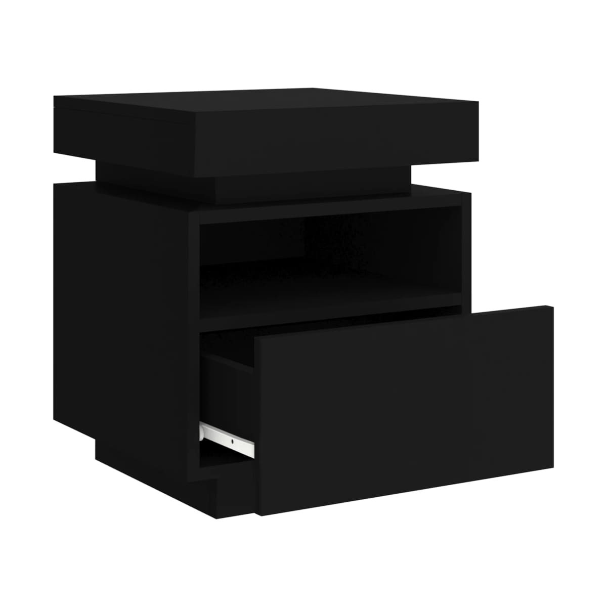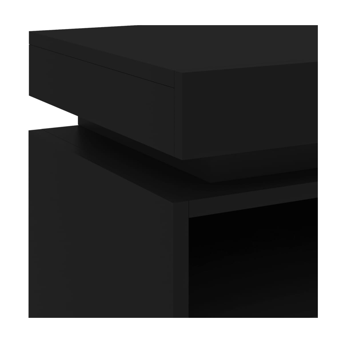 Con un diseño moderno pero práctico, esta mesita de noche con luz LED se convertirá definitivamente en el foco de atención de tu habitación. Material duradero: La madera de ingeniería tiene una calidad excepcional, con una superficie lisa y también cuenta con fuerza, estabilidad y resistencia a la humedad.Luces LED RGB: Esta mesita de noche cuenta con luces LED RGB, que tienen diferentes menús para cambiar el color de las luces y permitir que el color se ajuste de forma automática.Amplio espacio de almacenaje: La mesita de noche ofrece un práctico espacio de almacenaje para guardar bien organizados y al alcance revistas, mandos a distancia y otros objetos pequeños.Función de exhibición: La robusta parte superior del armario multimedia es ideal para exponer objetos decorativos, marcos de fotos o plantas en maceta. Información útil:El producto tiene un conector USB, pero no se incluye la fuente de alimentación USB de 5 V certificada.
