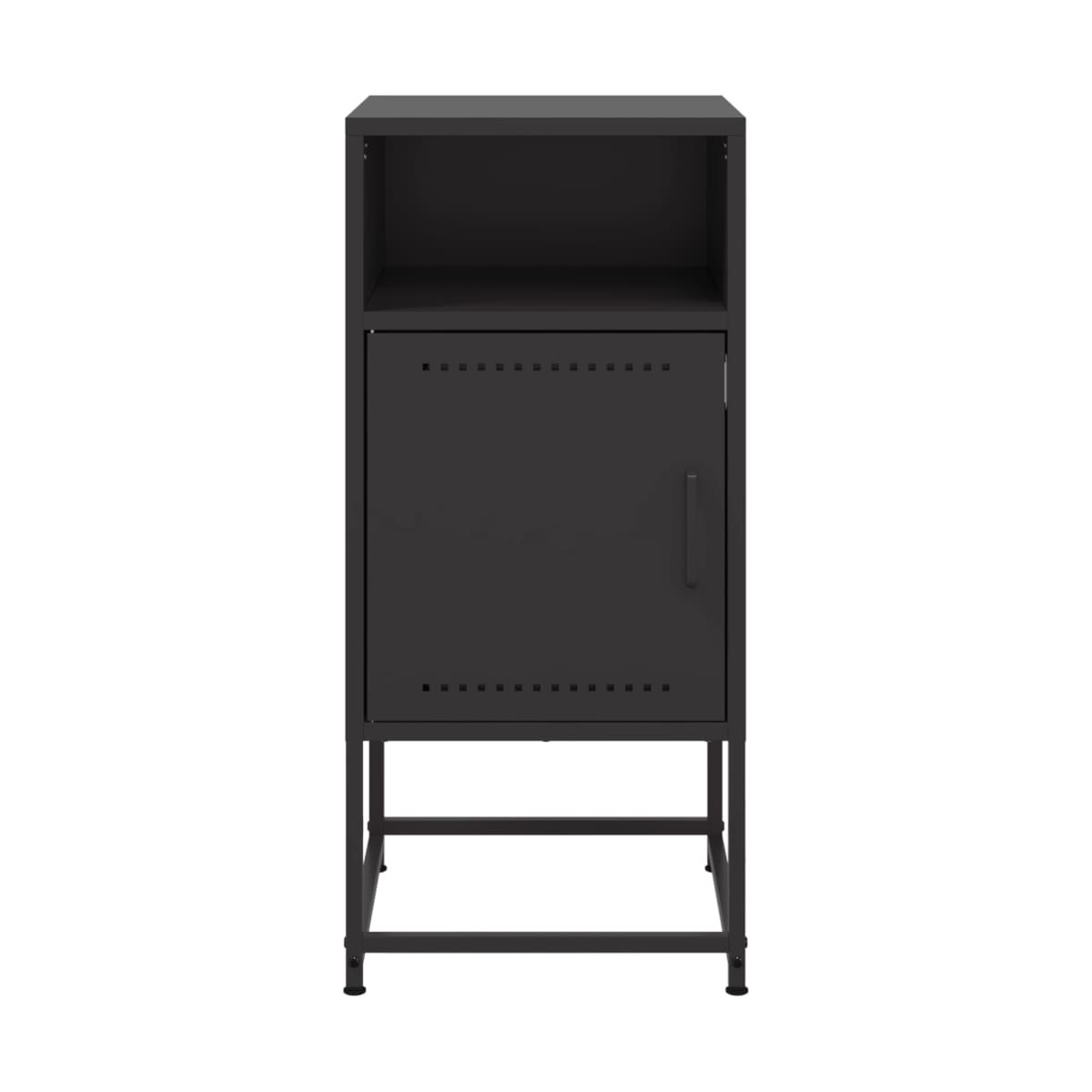 Esta mesita de noche con un diseño industrial es un complemento atemporal para la decoración de la casa. Estructura robusta y estable: El acero es fuerte, estable y duradero, lo que lo convierte en la opción ideal para una amplia gama de aplicaciones, desde la fabricación de muebles hasta la construcción.Amplio espacio de almacenaje: La mesita de noche ofrece un amplio espacio de almacenamiento para tener a mano y bien organizados tus distintos artículos de uso diario.Fácil de limpiar: La mesita de noche de acero es resistente a la humedad y fácil de limpiar con un paño húmedo.Diseño multiusos: Este mueble es ideal como mesita de noche al lado de la cama, como mesita al lado del sofá del salón o como mueble adicional para el estudio.Función expositora: También puedes colocar tus fotos favoritas, adornos o flores en la superficie de esta mesita de noche para alegrarte la vida. Advertencia:Para evitar que vuelque, este producto debe usarse con el dispositivo de fijación a la pared suministrado.