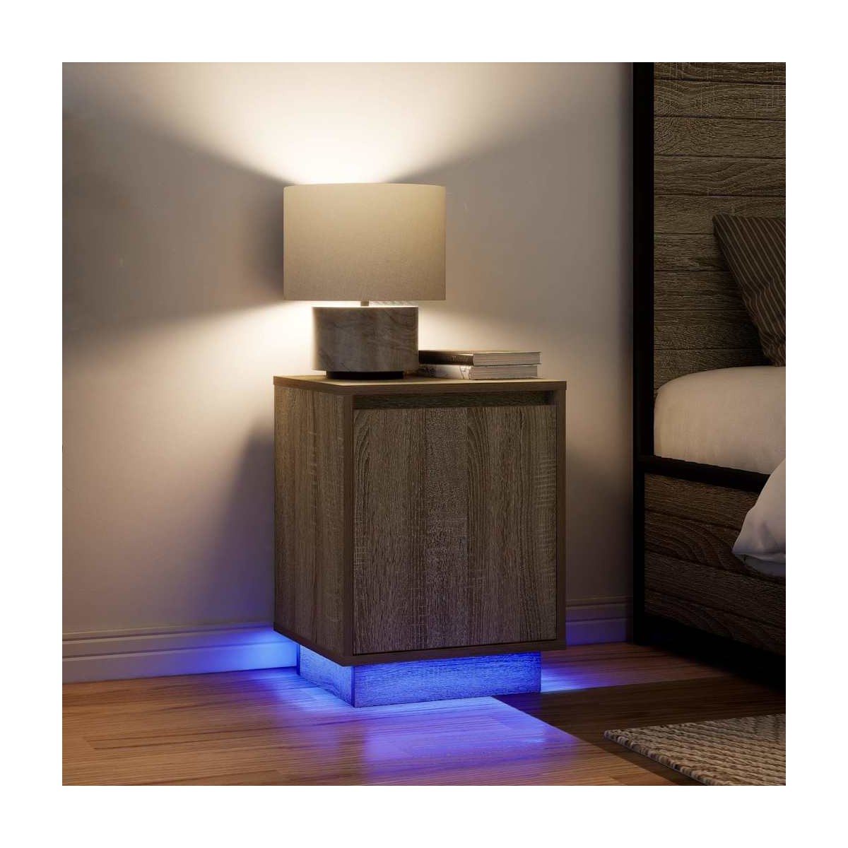 ¡Mejora tu dormitorio con estas mesitas de noche con luces LED! ¡Se complementan fácilmente con cualquier estilo de mobiliario de tu hogar! Material estable y duradero: La madera de ingeniería es un material duradero y estable con una superficie lisa que es resistente a la humedad, la deformación y la rotura, lo que la convierte en una opción fiable para una variedad de proyectos.Luces LED RGB para un ambiente agradable: las luces LED se pueden ajustar fácilmente para crear un espectáculo de luces personalizado. Puedes personalizar los modos, los colores y el brillo para mejorar el ambiente de tu espacio interior.Amplio espacio de almacenamiento: La mesilla de noche ofrece un amplio espacio de almacenamiento para revistas, libros, gafas y otros objetos esenciales para la hora de dormir, manteniéndolos organizados y al alcance de la mano.Superficie resistente: La robusta parte superior de la mesilla de noche es perfecta para colocar lámparas de mesa, despertadores, libros, marcos de fotos, pequeñas plantas en macetas, adornos u otros objetos esenciales.Fácil de mantener: Gracias a su superficie lisa, la mesita de noche es fácil de limpiar con un paño húmedo y requiere menos mantenimiento. Advertencia:Para evitar que vuelque, este producto debe usarse con el dispositivo de fijación a la pared suministrado. Información útil:El producto tiene un conector USB que necesita una fuente de alimentación USB certificada de 5 V (no incluida).