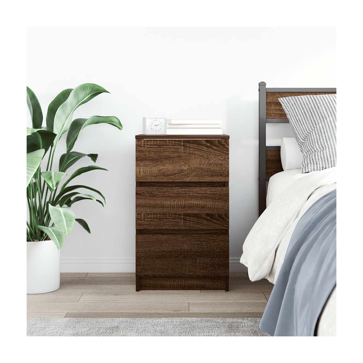 ¡Introduce un aire de encanto en la decoración de tu habitación con esta elegante mesita de noche! Material estable y duradero: La madera de ingeniería es un material duradero y estable con una superficie lisa que es resistente a la humedad, la deformación y la rotura, lo que la convierte en una opción fiable para una variedad de proyectos.Amplio espacio de almacenamiento: la mesita de noche ofrece un amplio espacio de almacenamiento para revistas, libros, vasos y otros elementos esenciales para la hora de dormir, manteniéndolos organizados y al alcance.Parte superior resistente: la parte superior resistente de la mesita de noche es perfecta para colocar lámparas de mesa, relojes despertadores, libros, marcos de fotos, pequeñas plantas en macetas, decoraciones u otros elementos esenciales.Fácil de mantener: Gracias a su superficie lisa, la mesita de noche es fácil de limpiar con un paño húmedo y requiere menos mantenimiento. Advertencia:Para evitar que vuelque, este producto debe usarse con el dispositivo de fijación a la pared suministrado.