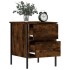Estas mesitas de noche con un diseño industrial son un complemento atemporal para la decoración de la casa. Material duradero: La madera de ingeniería tiene una calidad excepcional, con una superficie lisa y también cuenta con fuerza, estabilidad y resistencia a la humedad.Estructura robusta: La estructura de hierro de la mesita de noche garantiza su solidez y estabilidad.Amplio espacio de almacenaje: Diseñada con 2 cajones, la mesita auxiliar ofrece un amplio espacio de almacenaje para mantener tus cosas bien organizadas y al alcance.Patas regulables: El mueble auxiliar está equipado con 4 patas regulables que protegen el suelo de los arañazos y lo mantienen estable en suelo irregular.Función expositora: Puedes colocar tus fotos favoritas, adornos o flores en la superficie de esta mesita de noche para alegrarte la vida. Advertencia:Para evitar que vuelque, este producto debe usarse con el dispositivo de fijación a la pared incluido.
