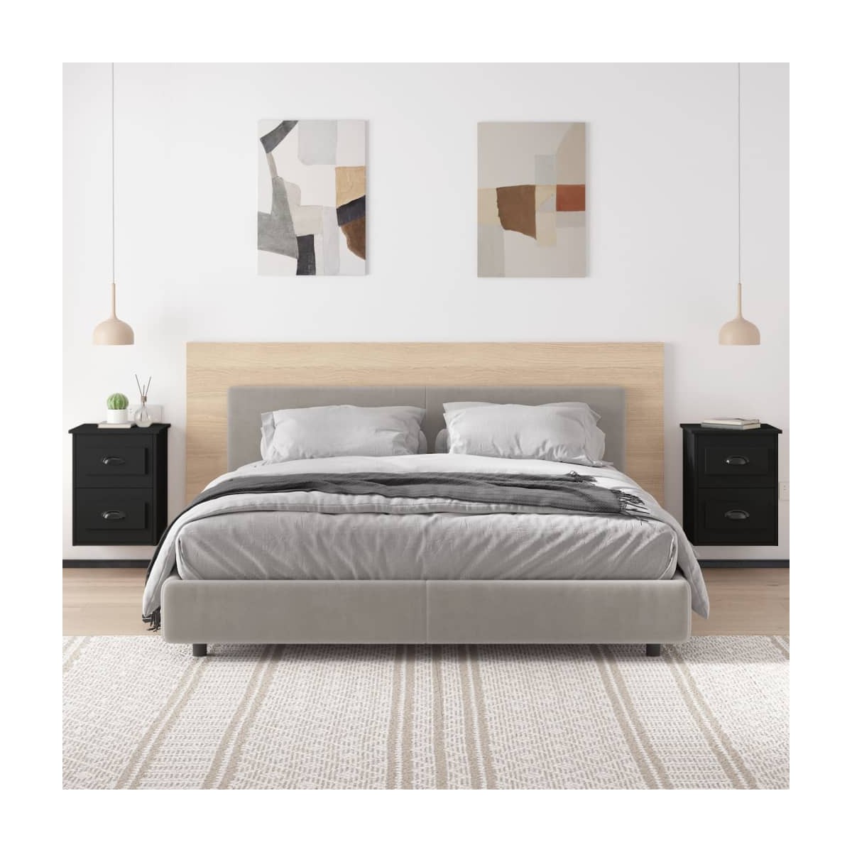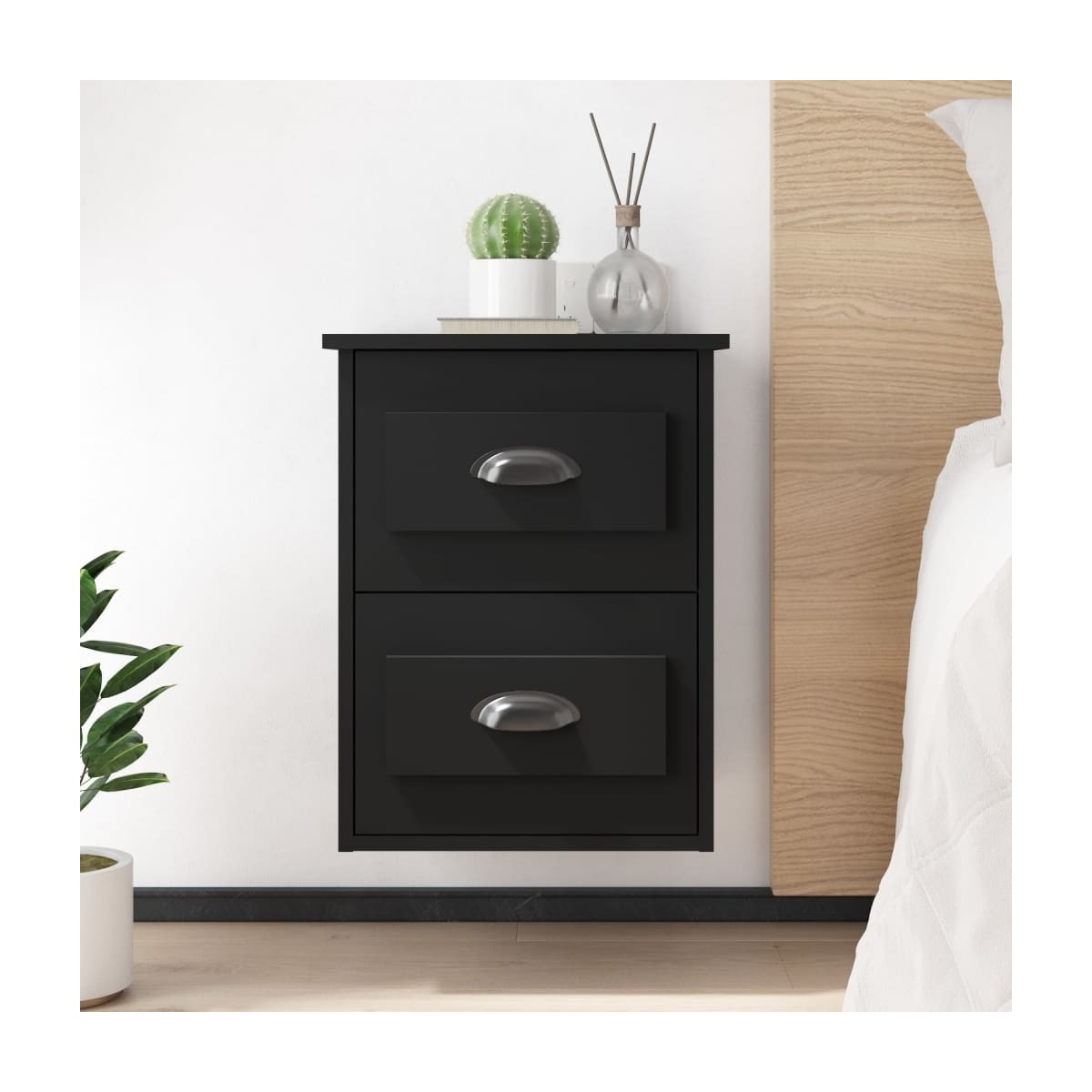 Estas mesita de noche de pared, con un diseño elegante, son un aporte atemporal para la decoración de la casa. Material duradero: La madera contrachapada tiene una calidad excepcional, con una superficie lisa y también cuenta con fuerza, estabilidad y resistencia a la humedad. Amplio espacio de almacenaje: La mesita de noche flotante está diseñada con dos cajones para guardar las cosas organizadas y al alcance. Montaje en la pared: La mesita de noche de pared no ocupa espacio en el suelo. Puedes colgarla de la pared fácilmente. Superficie estable y robusta: La superficie de la mesita de noche flotante es perfecta para exponer objetos decorativos, marcos de fotos y plantas. Información útil:Los tornillos y los tacos para el interior de la pared no están incluidos. Recomendamos encontrar y utilizar tornillos y tacos adecuados específicamente para las paredes. Si no estás seguro, puedes consultar con un profesional. Lee y sigue cada paso de las instrucciones.