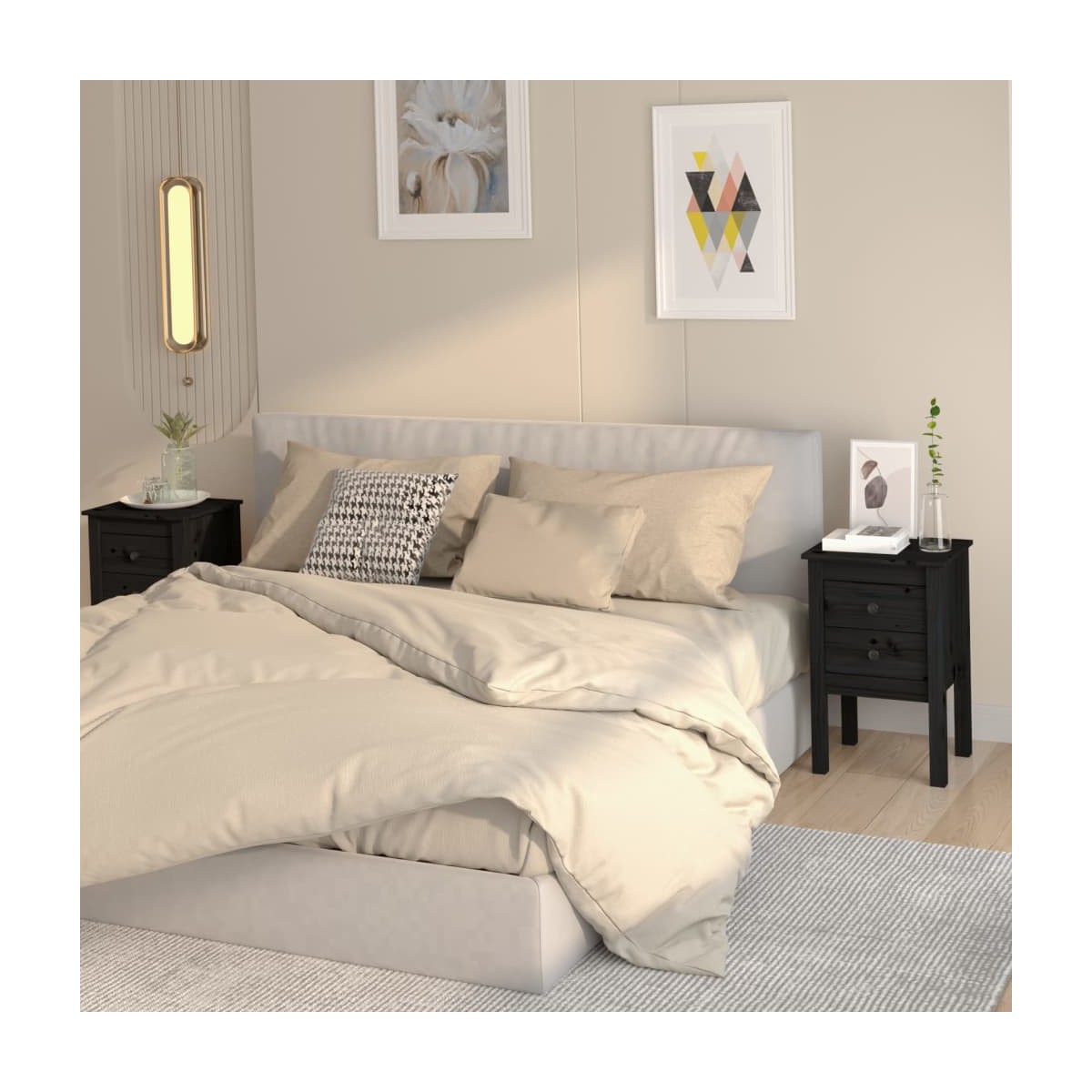 Este conjunto de mesita de noche de madera con un diseño elegante es un aporte intemporal para la decoración de tu hogar. Madera de pino maciza: La madera de pino maciza es un bonito material natural. La madera de pino tiene vetas rectas, y los nudos dan al material su distintivo aspecto rústico.Amplio espacio de almacenamiento: Equipada con 2 cajones, la mesita de noche ofrece un práctico espacio de almacenamiento para mantener tus revistas, mandos a distancia y otros objetos pequeños bien organizados y al alcance de la mano.Superficie robusta: La mesita de noche cuenta con una robusta superficie que puede ser utilizada para colocar lámparas de mesa, libros, etc. Advertencia:Para evitar el vuelco, este producto debe usarse con el dispositivo provisto para fijarlo a la pared.