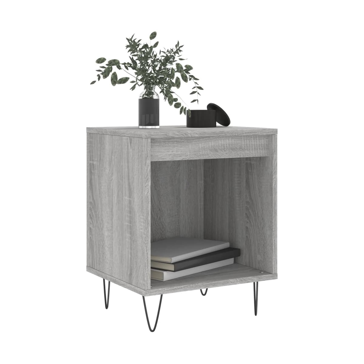 Estas modernas mesitas de noche, con un diseño elegante y clásico, están destinadas a mejorar el interior de la casa. Material duradero: La madera de ingeniería es de una buena calidad con superficie lisa y también se caracteriza por su fuerza, estabilidad y resistencia a la humedad. Hecha de madera de ingeniería, la mesita de noche es fácil de limpiar con un paño húmedo.Amplio espacio de almacenaje: La mesita de noche tiene un compartimento, por lo que ofrece un espacio amplio para guardar bien organizados y al alcance revistas, libros, mandos a distancia y otros objetos pequeños.Superficie resistente: La robusta superficie de la mesilla de noche es ideal para colocar objetos decorativos, marcos de fotos o plantas.Patas de metal: Las patas de metal le dan un estilo moderno y tranquilo a la casa mientras garantizan su estabilidad. Advertencia:Para evitar que vuelque, este producto debe usarse con el dispositivo de fijación a la pared incluido.