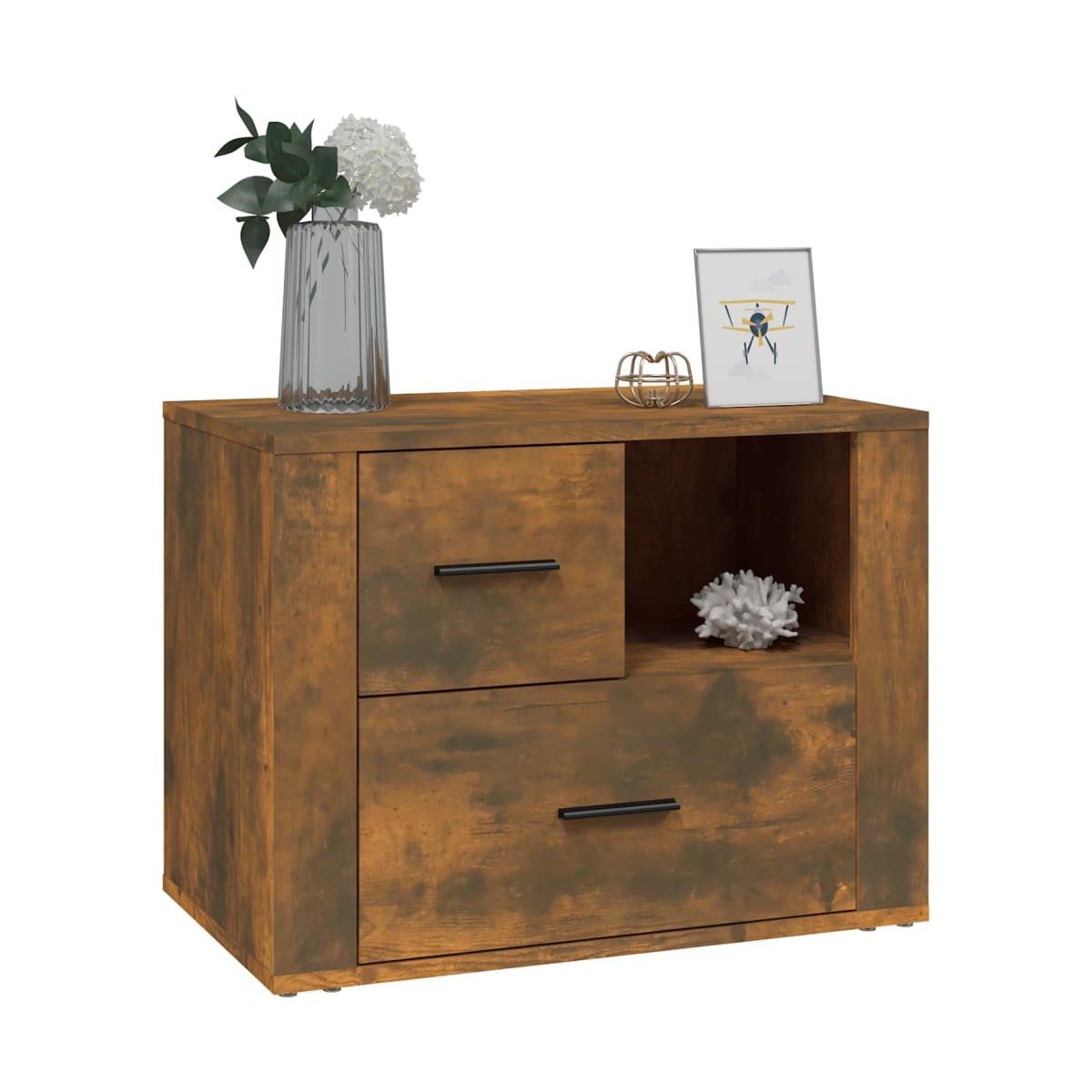 Esta moderna mesita de noche, con un diseño elegante y clásico, está destinada a mejorar el interior de la casa. Material duradero: La madera contrachapada tiene una calidad excepcional, con una superficie lisa y también cuenta con fuerza, estabilidad y resistencia a la humedad.Amplio espacio de almacenaje: La mesita de noche tiene 2 cajones y 1 compartimento, lo que ofrece amplio espacio para guardar bien organizados y al alcance revistas, libros, mandos a distancia y otros objetos pequeños.Superficie resistente: La robusta superficie es ideal para colocar objetos decorativos, marcos de fotos o plantas.Superficie fácil de limpiar: El mueble auxiliar es fácil de limpiar con un paño húmedo.Instalación flexible: El cajón de arriba se puede instalar a la derecha o la izquierda de forma flexible. Nota:Cada producto viene con un manual de montaje en la caja para facilitar el montaje.