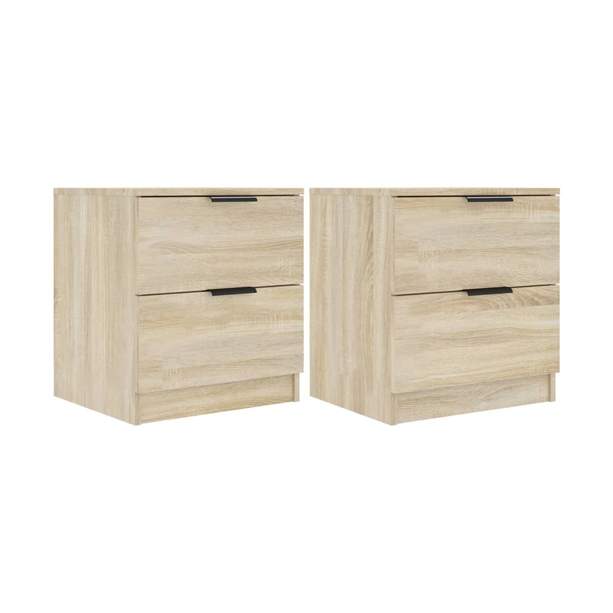 Estas mesitas de noche, con un diseño elegante, son un aporte atemporal para la decoración de tu hogar. Material de primera calidad: La madera contrachapada tiene una calidad excepcional, con una superficie lisa, y también cuenta con fuerza, estabilidad y resistencia a la humedad. Hecha de madera contrachapada, la mesita de noche es fácil de limpiar con un paño húmedo.Amplio espacio de almacenamiento: Equipada con 2 cajones, esta mesita de noche ofrece un práctico espacio de almacenamiento para guardar bien organizados y al alcance de la mano revistas, libros, mandos a distancia y otros objetos pequeños.Superficie estable: La estable superficie puede ser usada para colocar objetos decorativos como marcos de fotos y plantas en macetas. Advertencia:Para evitar el vuelco, este producto debe usarse con el dispositivo provisto para fijarlo a la pared.