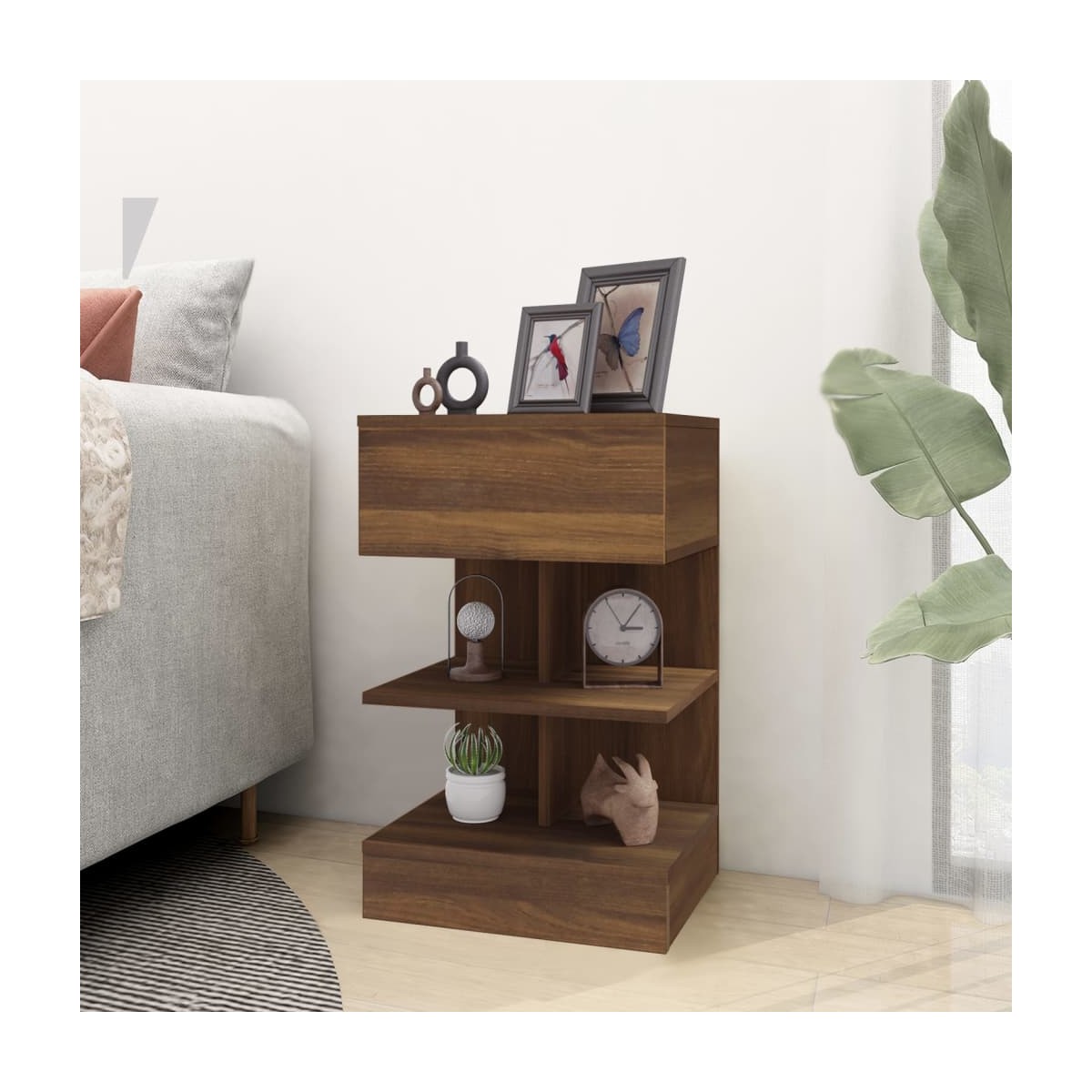 Con un diseño moderno pero práctico, esta mesita de noche definitivamente hace un foco de atención de tu habitación. Material práctico: La madera contrachapada tiene una calidad excepcional, con una superficie lisa y también cuenta con fuerza, estabilidad y resistencia a la humedad. Hecha de madera contrachapada, la mesita de noche es fácil de limpiar.Amplio espacio de almacenaje: El espacio de almacenaje de la mesita de noche permite tener las cosas organizadas.Mueble multiusos: La robusta superficie es ideal para exponer objetos decorativos, marcos de fotos o macetas. También se puede utilizar como mesa auxiliar, mesita, etc. ADVERTENCIA:Para evitar el vuelco, este producto debe usarse con el dispositivo provisto para fijarlo a la pared. Nota:Cada producto viene con un manual de montaje en la caja para facilitar el montaje.