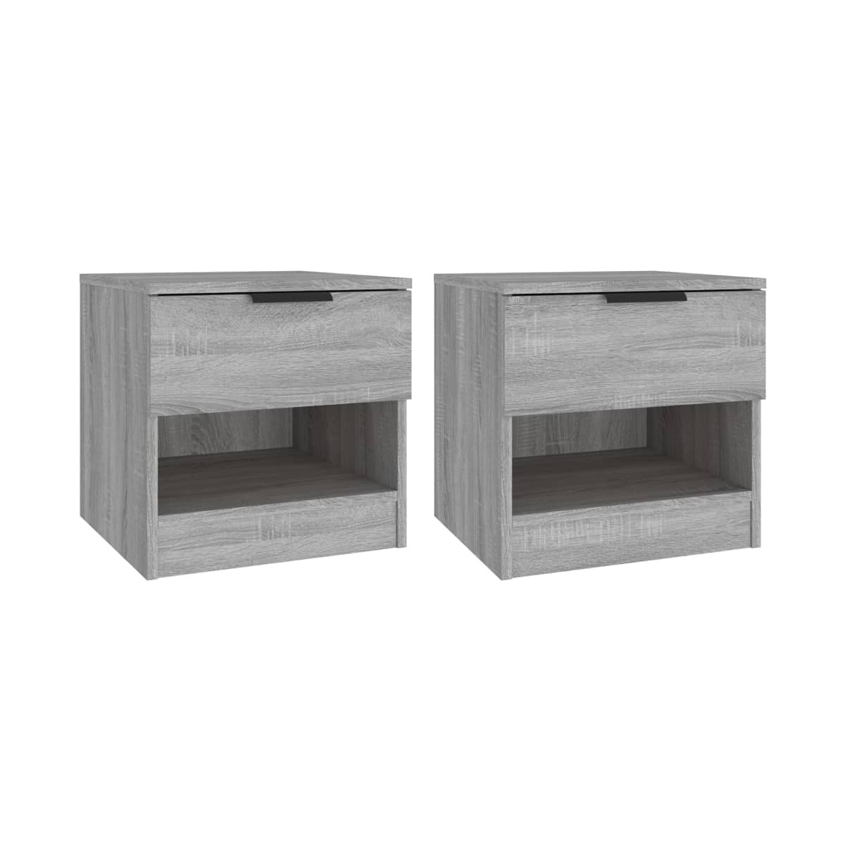 Este juego de mesitas de noche, con un diseño elegante, es un aporte atemporal para la decoración de tu hogar. Material de primera calidad: La madera contrachapada tiene una calidad excepcional, con una superficie lisa, y también cuenta con fuerza, estabilidad y resistencia a la humedad. Hecha de madera contrachapada, la mesita de noche es fácil de limpiar con un paño húmedo.Amplio espacio de almacenamiento: Equipada con 1 cajón y 1 compartimento, esta mesita de noche ofrece un práctico espacio de almacenamiento para guardar bien organizados y al alcance de la mano revista, mandos a distancia y otros objetos pequeños.Superficie robusta: La mesita de noche cuenta con una robusta superficie que puede ser utilizada para colocar lámparas de mesa, libros, etc.