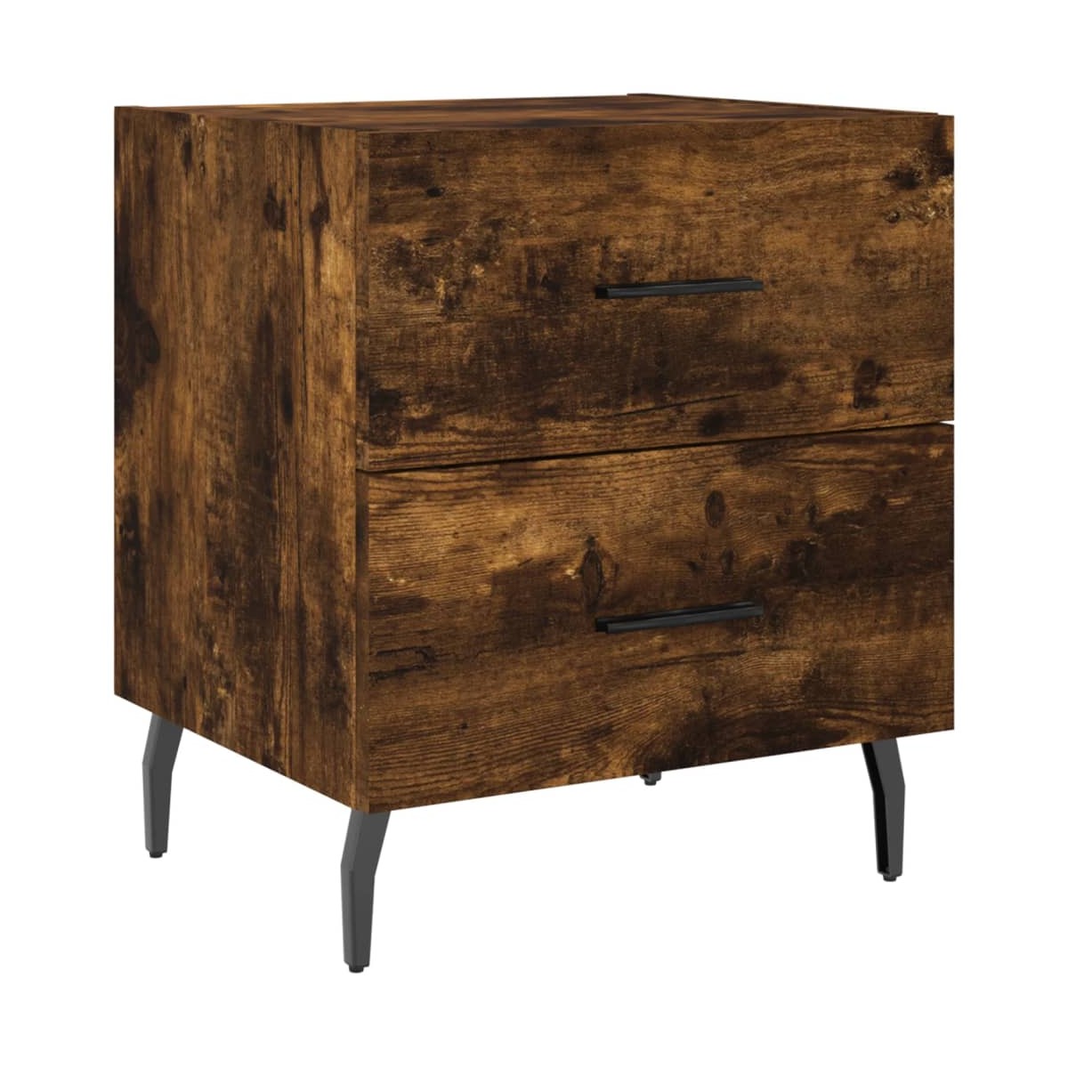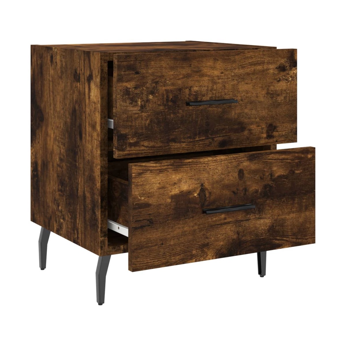 ¡Da un toque de encanto moderno a la casa con estas mesitas de noche! Material duradero: La madera contrachapada tiene una calidad excepcional, con una superficie lisa y también cuenta con fuerza, estabilidad y resistencia a la humedad. Almacenaje amplio: La mesita de noche tiene cajones, que ofrecen un amplio espacio de almacenaje para mantener al alcance libros, aparatos multimedia y otros objetos.Función expositora: También puedes colocar tus fotos favoritas, adornos o flores en la superficie de esta mesita auxiliar para alegrarte la vida. Patas de metal: Las patas metálicas añaden un estilo tranquilo a la casa a la vez que garantizan la estabilidad.