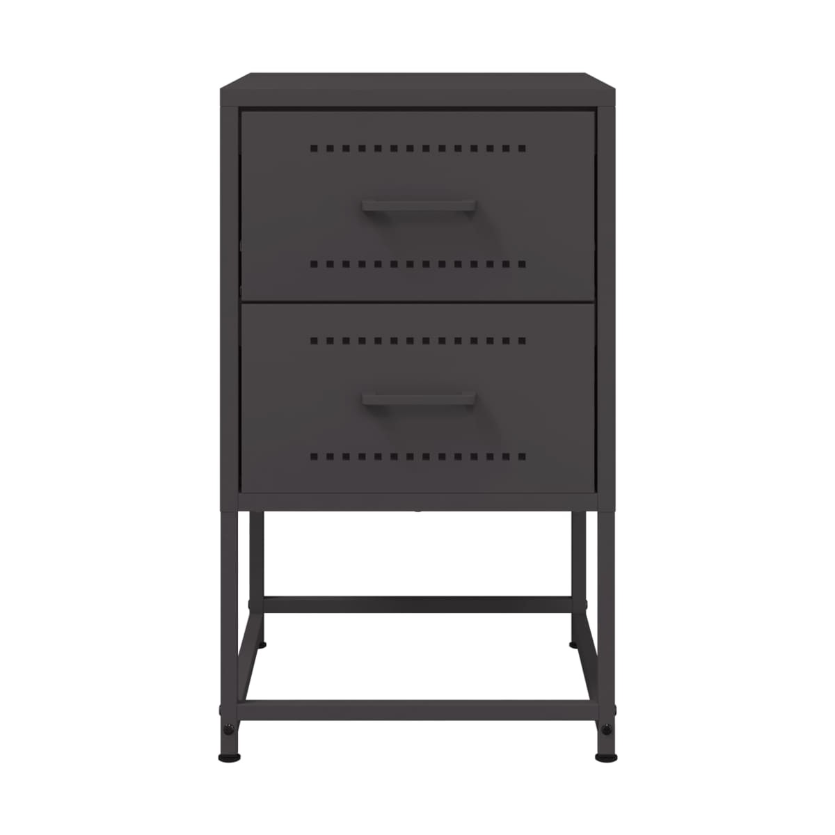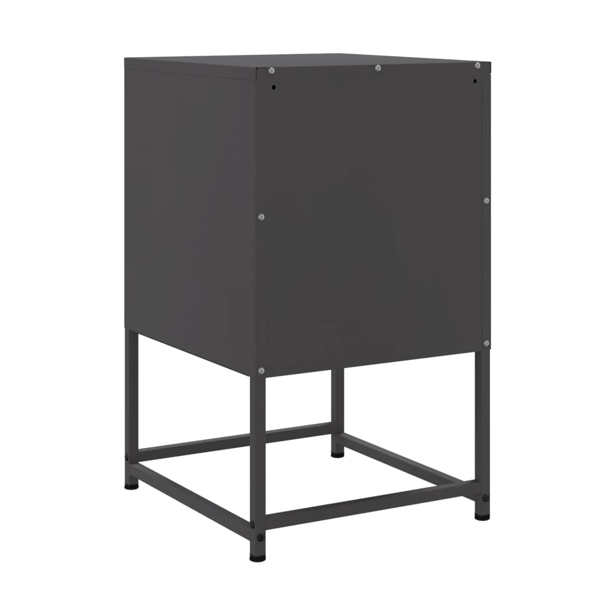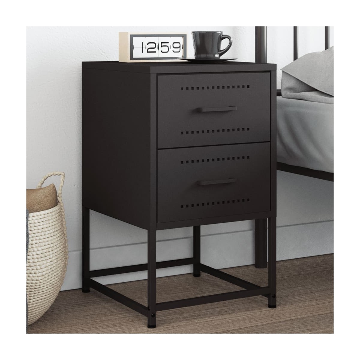 Esta mesita de noche con un diseño industrial es un complemento atemporal para la decoración de la casa. Estructura robusta y estable: El acero es fuerte, estable y duradero, lo que lo convierte en la opción ideal para una amplia gama de aplicaciones, desde la fabricación de muebles hasta la construcción.Amplio espacio de almacenaje: La mesita de noche ofrece un amplio espacio de almacenamiento para tener a mano y bien organizados tus distintos artículos de uso diario.Fácil de limpiar: La mesita de noche de acero es resistente a la humedad y fácil de limpiar con un paño húmedo.Diseño multiusos: Este mueble es ideal como mesita de noche al lado de la cama, como mesita al lado del sofá del salón o como mueble adicional para el estudio.Función expositora: También puedes colocar tus fotos favoritas, adornos o flores en la superficie de esta mesita de noche para alegrarte la vida. Advertencia:Para evitar que vuelque, este producto debe usarse con el dispositivo de fijación a la pared suministrado.