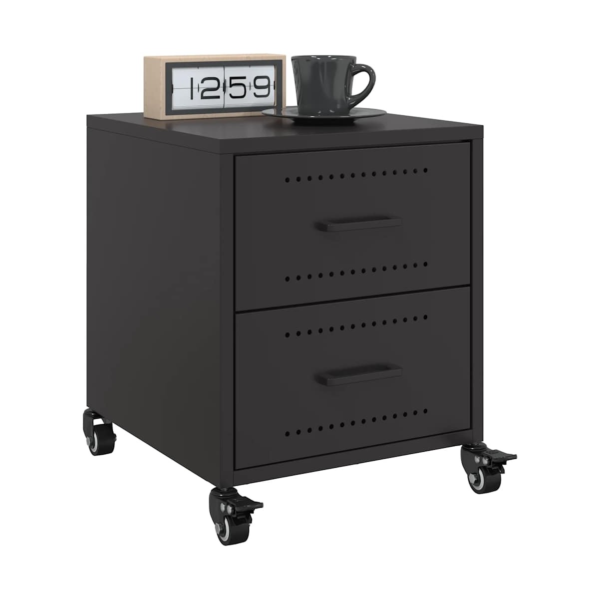 Estas mesitas de noche, con un diseño elegante, son un aporte atemporal para la decoración de tu hogar. Material estable: La estructura de la mesita de noche está hecha de acero laminado en frío. El acero laminado en frío es un tipo de acero con bajo contenido en carbono producido mediante un método de laminación en frío y procesado a temperaturas ambiente cercanas a las normales. El acero laminado en frío tiene una superficie más lisa, mayor resistencia y mayor precisión.Amplio espacio de almacenaje: Este mueble ofrece un práctico espacio de almacenaje para mantener revistas, libros, mandos a distancia y otros objetos pequeños bien organizados y al alcance.Fácil de mantener: La mesa se limpia fácilmente con un paño húmedo y requiere menos mantenimiento.Fácil de mover: Esta mesa auxiliar tiene 4 ruedas, lo que hace que se mueva con flexibilidad y se estacione de manera estable en cualquier momento.Tirador práctico: La mesita de noche viene con un tirador que facilita abrir y cerrar el mueble, además de añadir un toque de belleza.