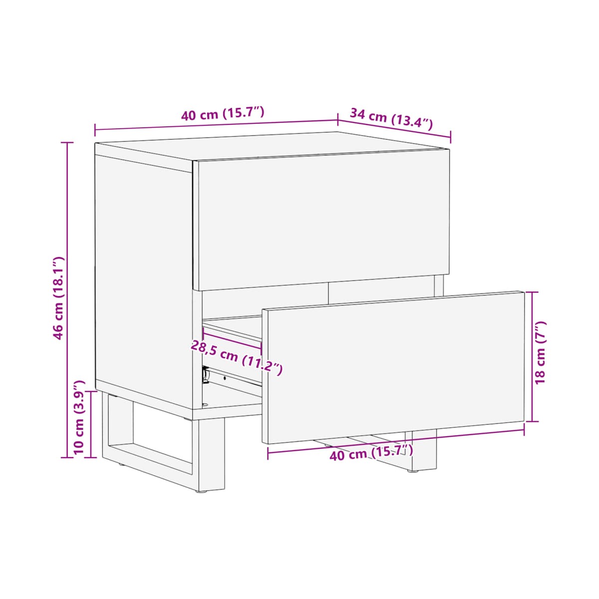 - Dimensiones: 40 x 34 x 46 cm (largo x ancho x alto)