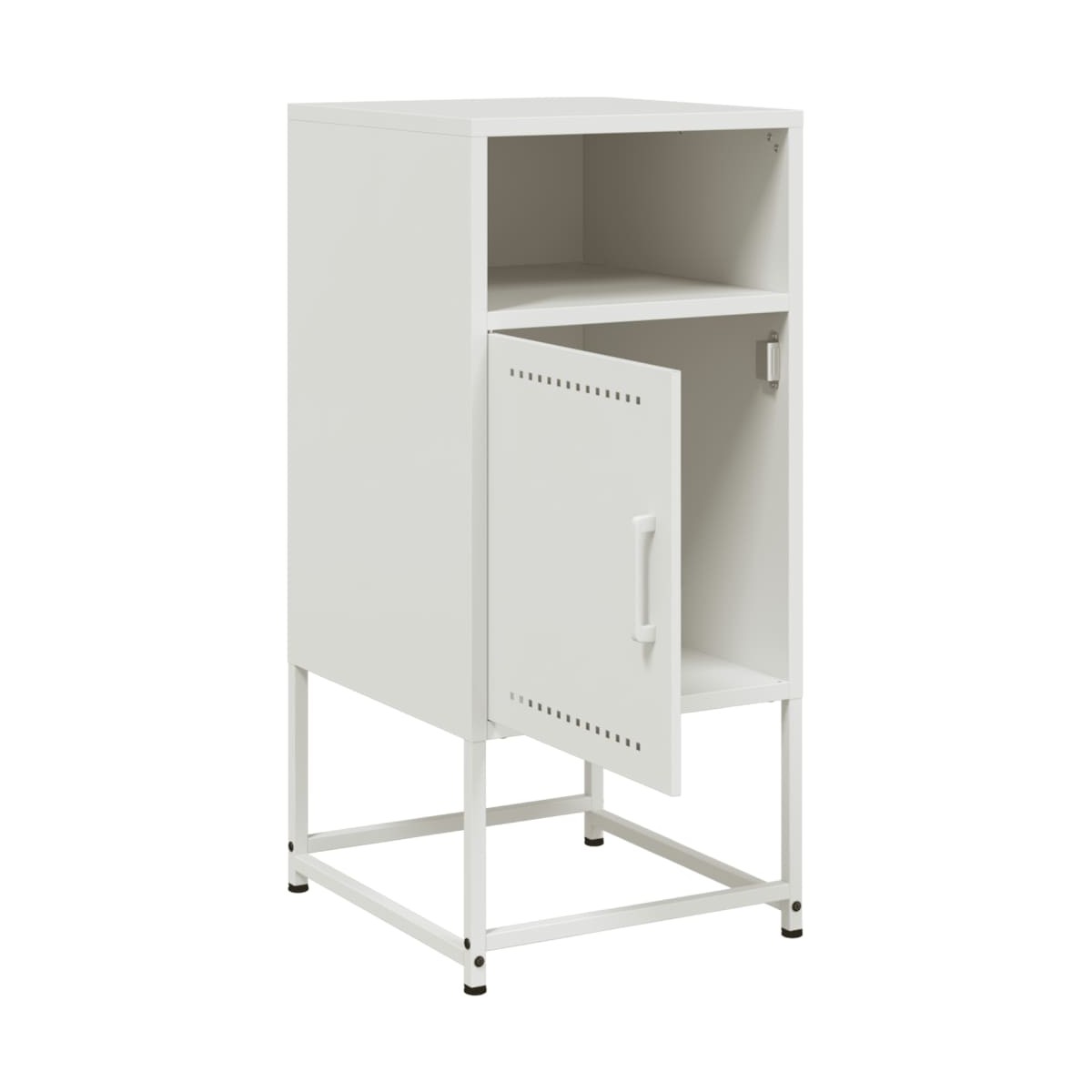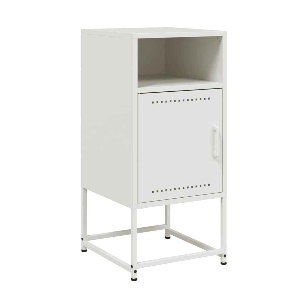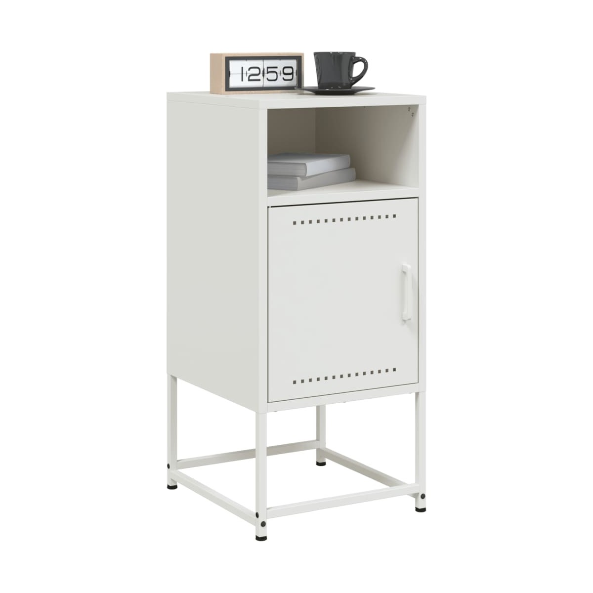 Estas mesitas de noche con un diseño industrial son un complemento atemporal para la decoración de la casa. Estructura robusta y estable: El acero es fuerte, estable y duradero, lo que lo convierte en la opción ideal para una amplia gama de aplicaciones, desde la fabricación de muebles hasta la construcción.Amplio espacio de almacenaje: La mesita de noche ofrece un amplio espacio de almacenamiento para tener a mano y bien organizados tus distintos artículos de uso diario.Fácil de limpiar: La mesita de noche de acero es resistente a la humedad y fácil de limpiar con un paño húmedo.Diseño multiusos: Este mueble es ideal como mesita de noche al lado de la cama, como mesita al lado del sofá del salón o como mueble adicional para el estudio.Función expositora: También puedes colocar tus fotos favoritas, adornos o flores en la superficie de esta mesita de noche para alegrarte la vida. Advertencia:Para evitar que vuelque, este producto debe usarse con el dispositivo de fijación a la pared suministrado.