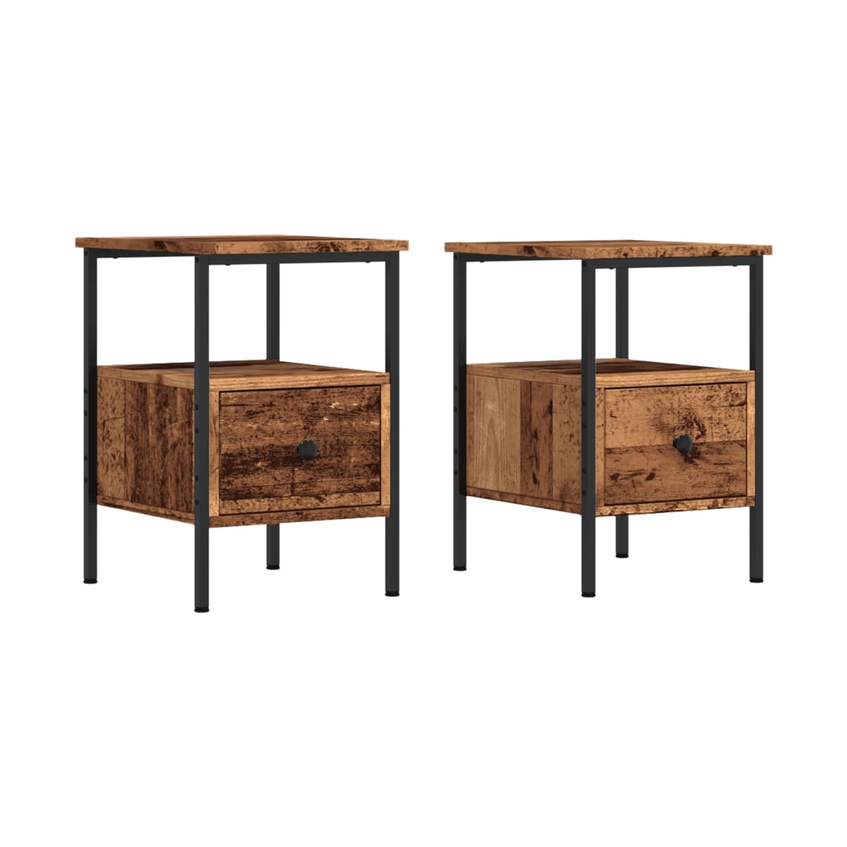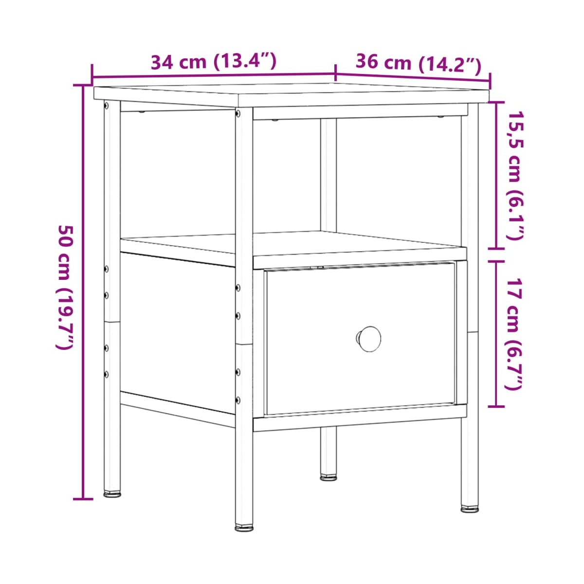 Con un diseño sencillo y compacto, estas mesitas de noche encajan fácilmente en el dormitorio o el salón y añaden un encanto atemporal a la casa.Material duradero: La madera de ingeniería tiene una calidad excepcional, con una superficie lisa y también cuenta con fuerza, estabilidad y resistencia a la humedad.Estructura robusta: La estructura de hierro garantiza su solidez y estabilidad.Amplio espacio de almacenaje: La mesita de noche ofrece un amplio espacio de almacenaje para mantener tus artículos de uso diario bien organizados y al alcance.Función expositora: También puedes colocar tus fotos favoritas, adornos o flores en la superficie de esta mesita auxiliar para alegrarte la vida.Patas ajustables: Cuatro patas ajustables con almohadillas de plástico mantienen el armario auxiliar equilibrado en suelo irregular y aumentan la estabilidad.Advertencia:Para evitar que vuelque, este producto debe usarse con el dispositivo de fijación a la pared (no incluido).