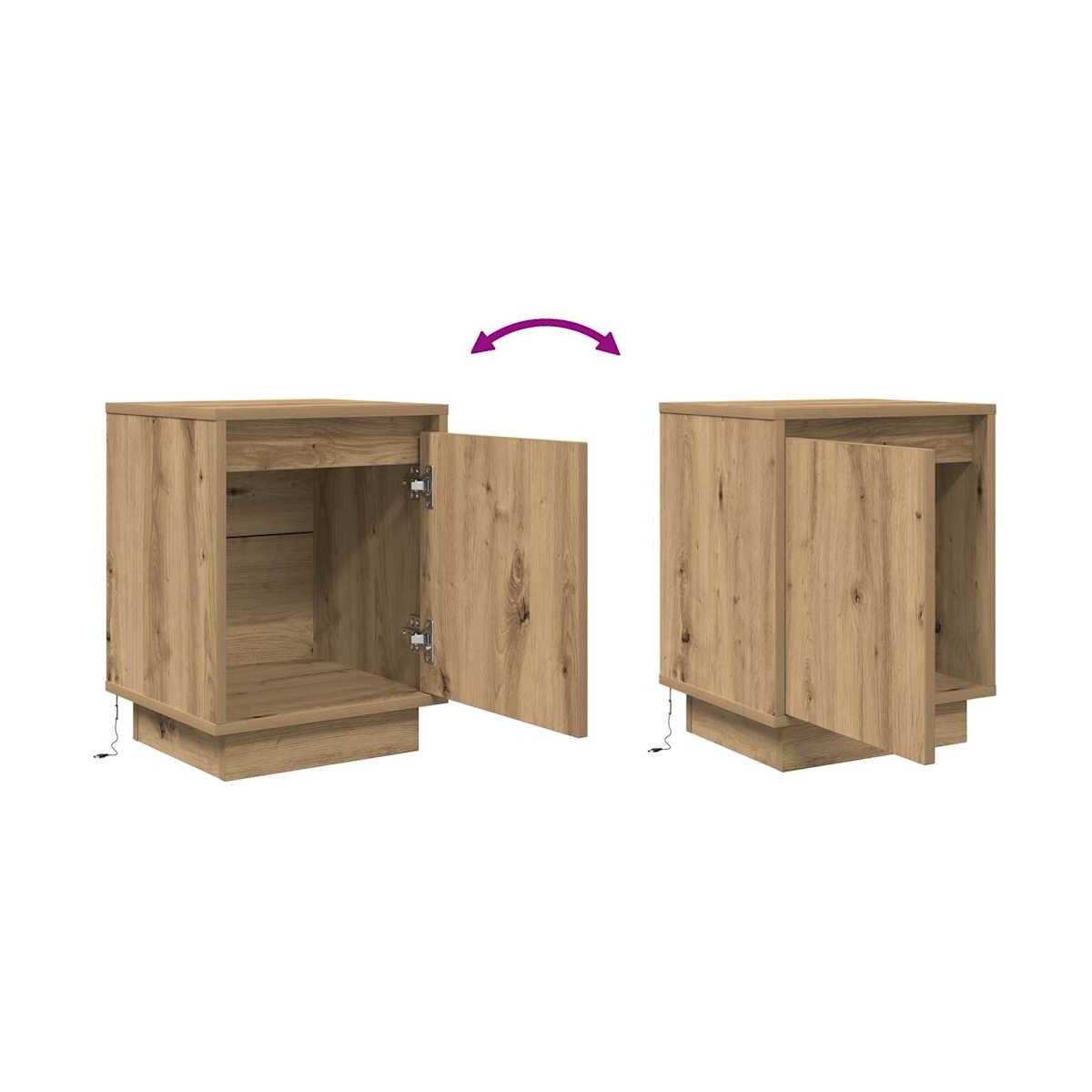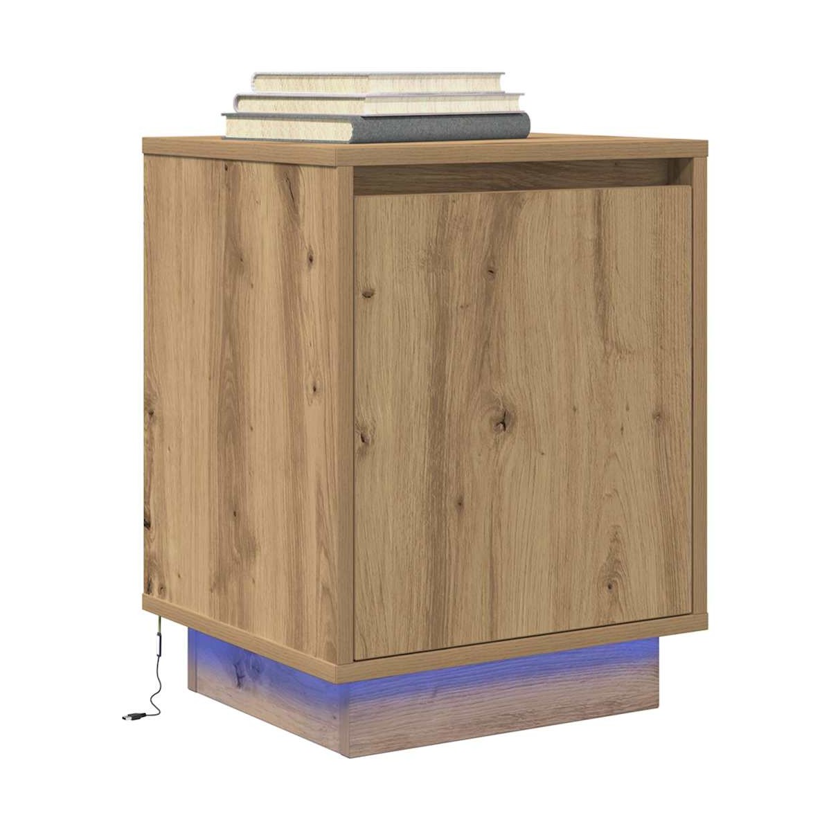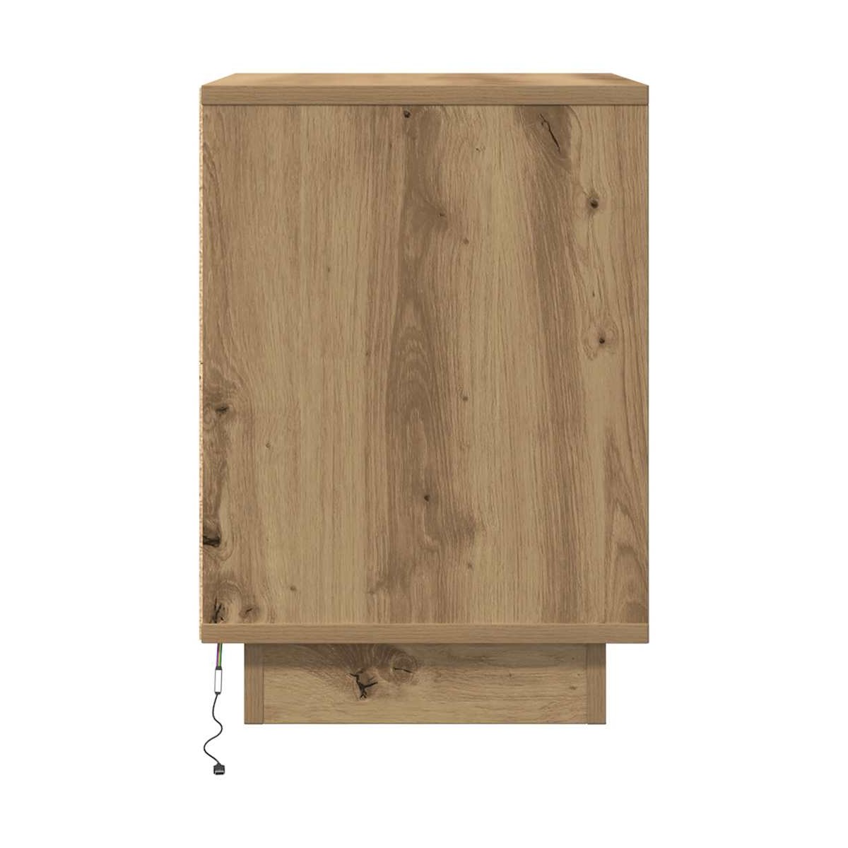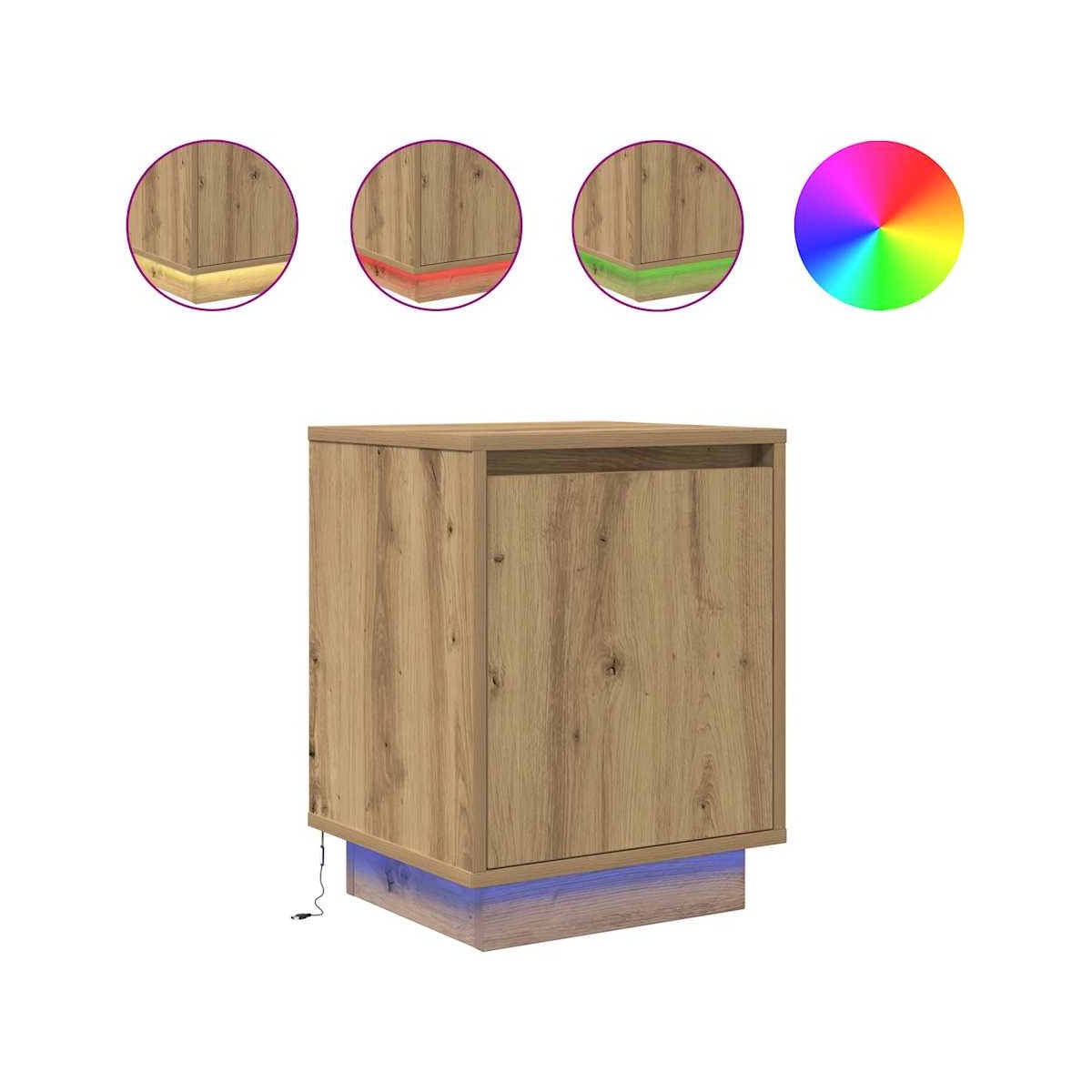 ¡Mejora tu dormitorio con estas mesitas de noche con luces LED! ¡Se complementan fácilmente con cualquier estilo de mobiliario de tu hogar! Material estable y duradero: La madera de ingeniería es un material duradero y estable con una superficie lisa que es resistente a la humedad, la deformación y la rotura, lo que la convierte en una opción fiable para una variedad de proyectos.Luces LED RGB para un ambiente agradable: las luces LED se pueden ajustar fácilmente para crear un espectáculo de luces personalizado. Puedes personalizar los modos, los colores y el brillo para mejorar el ambiente de tu espacio interior.Amplio espacio de almacenamiento: La mesilla de noche ofrece un amplio espacio de almacenamiento para revistas, libros, gafas y otros objetos esenciales para la hora de dormir, manteniéndolos organizados y al alcance de la mano.Superficie resistente: La robusta parte superior de la mesilla de noche es perfecta para colocar lámparas de mesa, despertadores, libros, marcos de fotos, pequeñas plantas en macetas, adornos u otros objetos esenciales.Fácil de mantener: Gracias a su superficie lisa, la mesita de noche es fácil de limpiar con un paño húmedo y requiere menos mantenimiento. Advertencia:Para evitar que vuelque, este producto debe usarse con el dispositivo de fijación a la pared suministrado. Información útil:El producto tiene un conector USB que necesita una fuente de alimentación USB certificada de 5 V (no incluida).