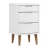 Esta moderna mesita de noche de madera, con encanto escandinavo, está diseñada para elevar tu decoración al siguiente nivel. Madera de pino maciza: La madera de pino maciza es un bonito material natural. La madera de pino tiene vetas rectas, y los nudos dan al material su distintivo aspecto rústico.Barniz UV: El barniz UV es un tipo especial de barniz que se acaba con una máquina de secado ultravioleta. Crea un acabado más vívido, más lujoso y más táctil en comparación con los barnices que no son UV.Estructura estable: La estructura de madera garantiza su solidez y estabilidad.Amplio espacio de almacenaje: La mesita de noche tiene 3 cajones. Los espaciosos cajones te permiten tener las cosas organizadas.Superficie resistente: La robusta superficie es ideal para colocar objetos decorativos, marcos de fotos o plantas. Advertencia:Para evitar el vuelco, este producto debe usarse con el dispositivo provisto para fijarlo a la pared. Nota:Cada producto viene con un manual de montaje en la caja para facilitar el montaje.
