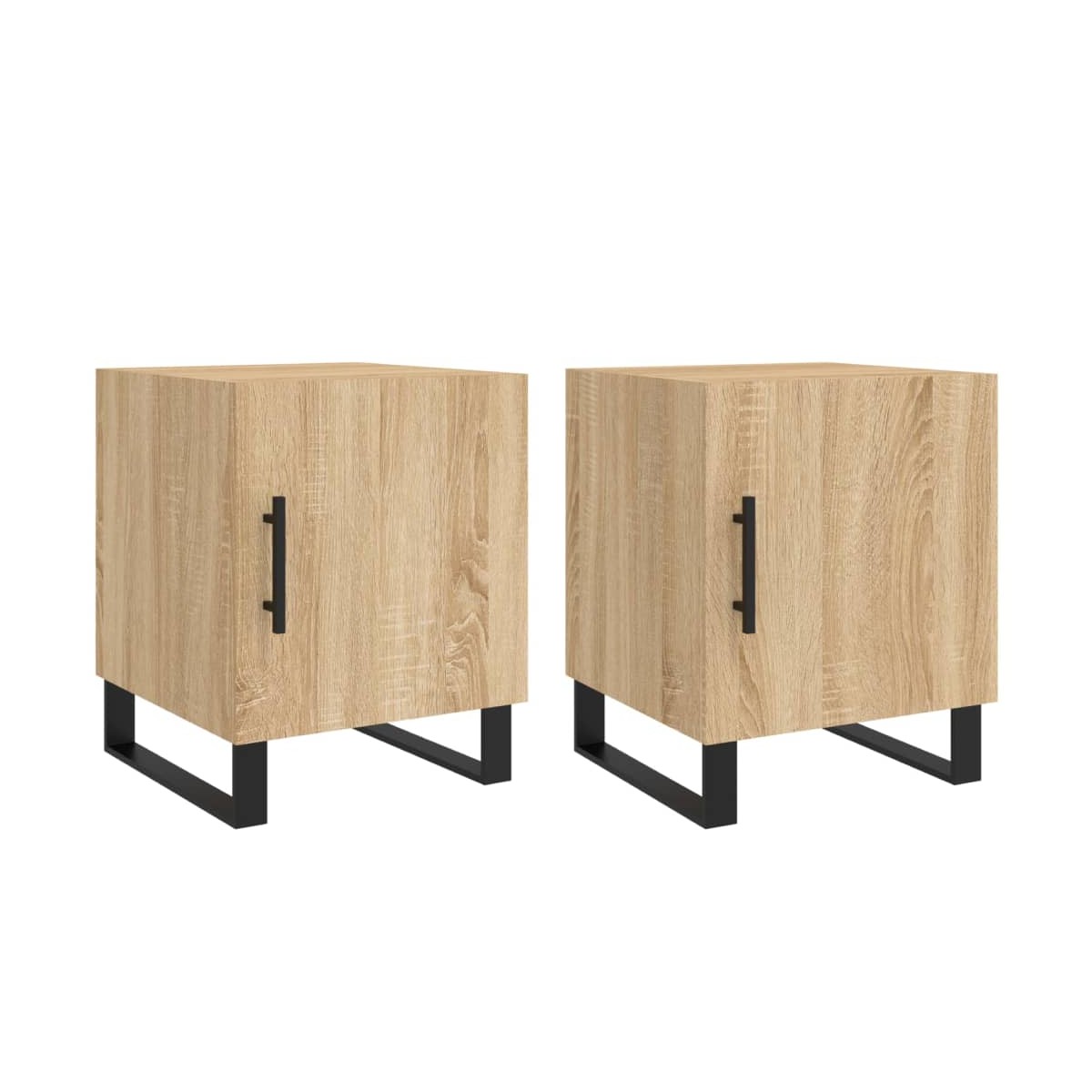 ¡Da un toque de encanto moderno a la casa con estas mesitas de noche! Material duradero: La madera de ingeniería tiene una calidad excepcional, con una superficie lisa y también cuenta con fuerza, estabilidad y resistencia a la humedad. Amplio espacio de almacenaje: La mesita de noche tiene un compartimento, por lo que ofrece un amplio espacio de almacenaje para mantener al alcance libros, aparatos multimedia y otros objetos.Función expositora: También puedes colocar tus fotos favoritas, adornos o flores en la superficie de esta mesita auxiliar para alegrarte la vida. Patas de metal: Las patas metálicas añaden un estilo tranquilo a la casa a la vez que garantizan la estabilidad.Práctica puerta: Mantén tus cosas libres de polvo ocultándolas detrás de la puerta. Advertencia: Para evitar que vuelque, este producto debe usarse con el dispositivo de fijación a la pared incluido.