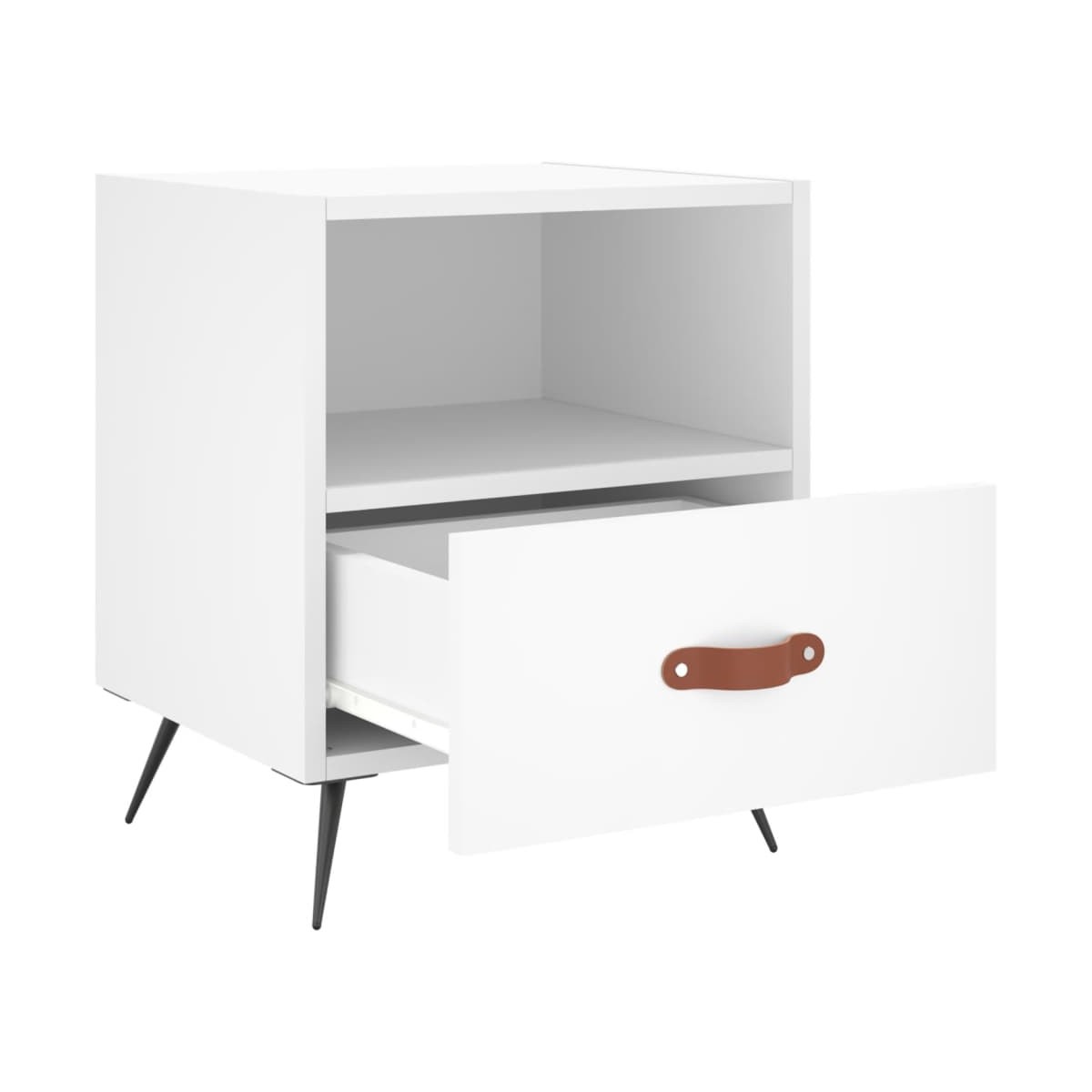 ¡Da un toque de encanto moderno a la casa con esta mesita de noche! Material duradero: La madera contrachapada tiene una calidad excepcional, con una superficie lisa y también cuenta con fuerza, estabilidad y resistencia a la humedad. Amplio espacio de almacenaje: La mesita de noche tiene un compartimento y un cajón, por lo que ofrece un amplio espacio de almacenaje para mantener al alcance libros, aparatos multimedia y otros objetos. Función expositora: También puedes colocar tus fotos favoritas, adornos o flores en la superficie de esta mesita auxiliar para alegrarte la vida. Patas de metal: Las patas metálicas añaden un estilo tranquilo a la casa a la vez que garantizan la estabilidad.