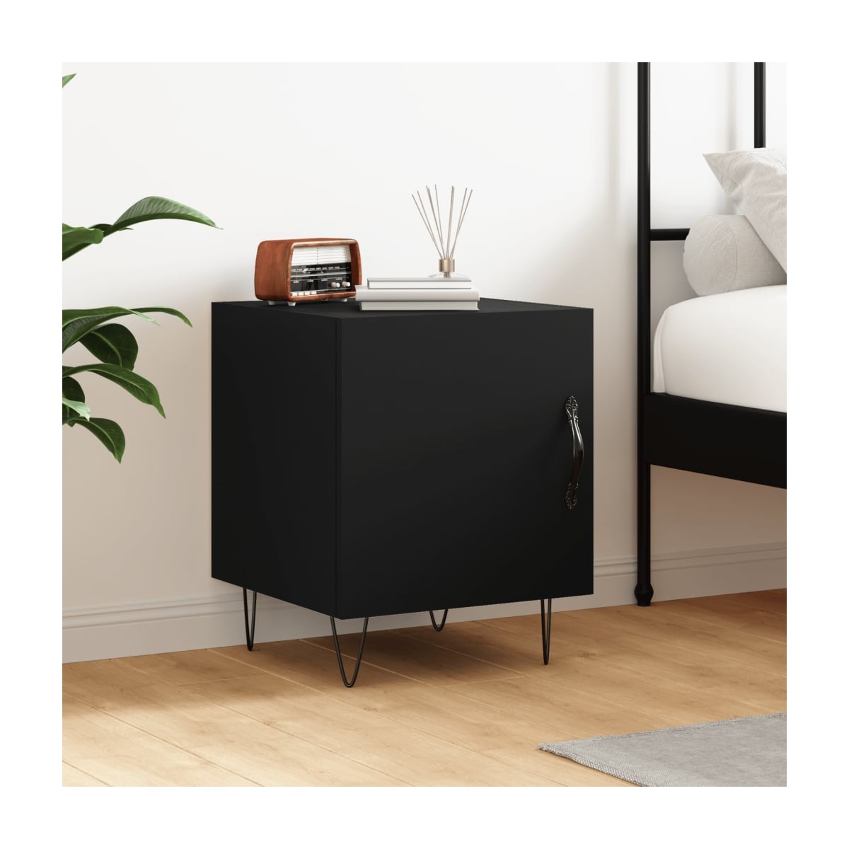 ¡Da un toque de encanto moderno a la casa con esta mesita de noche! Material duradero: La madera contrachapada tiene una calidad excepcional, con una superficie lisa y también cuenta con fuerza, estabilidad y resistencia a la humedad. Amplio espacio de almacenaje: La mesita de noche tiene un compartimento, por lo que ofrece un amplio espacio de almacenaje para mantener al alcance libros, aparatos multimedia y otros objetos.Función expositora: También puedes colocar tus fotos favoritas, adornos o flores en la superficie de esta mesita auxiliar para alegrarte la vida. Patas de metal: Las patas metálicas añaden un estilo tranquilo a la casa a la vez que garantizan la estabilidad.Práctica puerta: Mantén tus cosas libres de polvo ocultándolas detrás de la puerta. Advertencia: Para evitar que vuelque, este producto debe usarse con el dispositivo de fijación a la pared incluido.