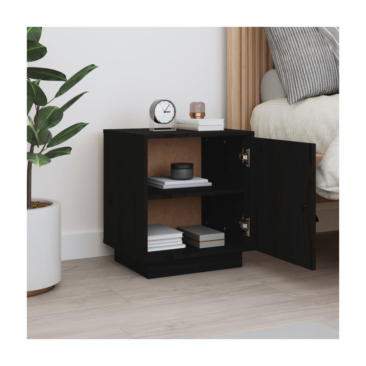 Esta mesita de noche de madera con un diseño elegante es un complemento atemporal para la decoración de la casa. Madera de pino maciza: La madera de pino maciza es un bonito material natural. La madera de pino tiene vetas rectas, y los nudos dan al material su distintivo aspecto rústico.Amplio espacio de almacenamiento: Con 2 compartimentos y 1 puerta con asa de cuero sintético, este mueble ofrece un amplio espacio de almacenamiento para mantener tus revistas, libros, DVD, dispositivos multimedia y otros objetos decorativos bien organizados y al alcance de la mano.Instalación flexible de la puerta: La puerta de la mesita de noche puede instalarse a la izquierda o a la derecha, según tus hábitos personales y tu comodidad.Superficie resistente: La robusta superficie de la mesilla de noche es ideal para colocar objetos decorativos, marcos de fotos o plantas. Nota:Cada producto viene con un manual de montaje en la caja para facilitar el montaje.