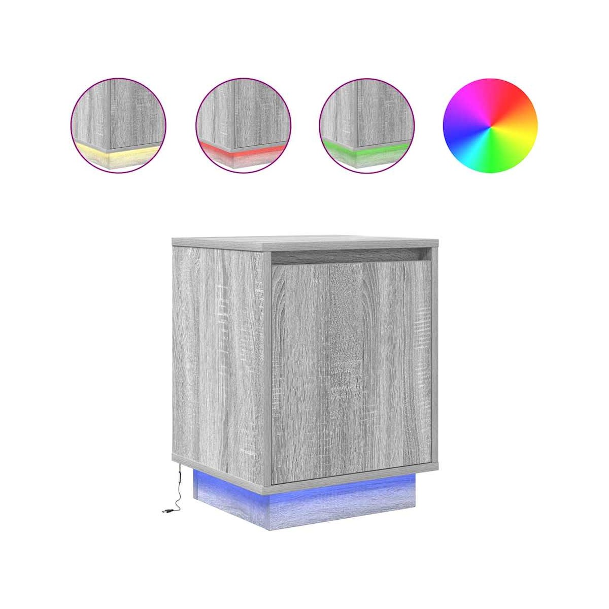 ¡Mejora tu dormitorio con esta mesita de noche con luces LED! ¡Combina fácilmente con cualquier estilo de mobiliario de tu hogar! Material estable y duradero: La madera de ingeniería es un material duradero y estable con una superficie lisa que es resistente a la humedad, la deformación y la rotura, lo que la convierte en una opción fiable para una variedad de proyectos.Luces LED RGB para un ambiente agradable: las luces LED se pueden ajustar fácilmente para crear un espectáculo de luces personalizado. Puedes personalizar los modos, los colores y el brillo para mejorar el ambiente de tu espacio interior.Amplio espacio de almacenamiento: La mesilla de noche ofrece un amplio espacio de almacenamiento para revistas, libros, gafas y otros objetos esenciales para la hora de dormir, manteniéndolos organizados y al alcance de la mano.Superficie resistente: La robusta parte superior de la mesilla de noche es perfecta para colocar lámparas de mesa, despertadores, libros, marcos de fotos, pequeñas plantas en macetas, adornos u otros objetos esenciales.Fácil de mantener: Gracias a su superficie lisa, la mesita de noche es fácil de limpiar con un paño húmedo y requiere menos mantenimiento. Advertencia:Para evitar que vuelque, este producto debe usarse con el dispositivo de fijación a la pared suministrado. Información útil:El producto tiene un conector USB que necesita una fuente de alimentación USB certificada de 5 V (no incluida).