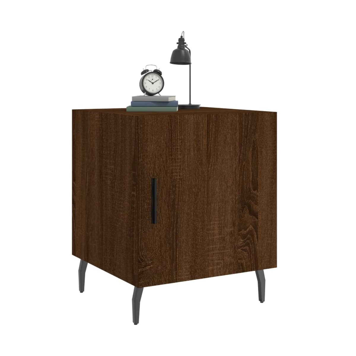 ¡Da un toque de encanto moderno a la casa con estas mesitas de noche! Material duradero: La madera de ingeniería tiene una calidad excepcional, con una superficie lisa y también cuenta con fuerza, estabilidad y resistencia a la humedad. Amplio espacio de almacenaje: La mesita de noche tiene un compartimento, por lo que ofrece un amplio espacio de almacenaje para mantener al alcance libros, aparatos multimedia y otros objetos.Función expositora: También puedes colocar tus fotos favoritas, adornos o flores en la superficie de esta mesita auxiliar para alegrarte la vida. Patas de metal: Las patas metálicas añaden un estilo tranquilo a la casa a la vez que garantizan la estabilidad.Práctica puerta: Mantén tus cosas libres de polvo ocultándolas detrás de la puerta. Advertencia: Para evitar que vuelque, este producto debe usarse con el dispositivo de fijación a la pared incluido.