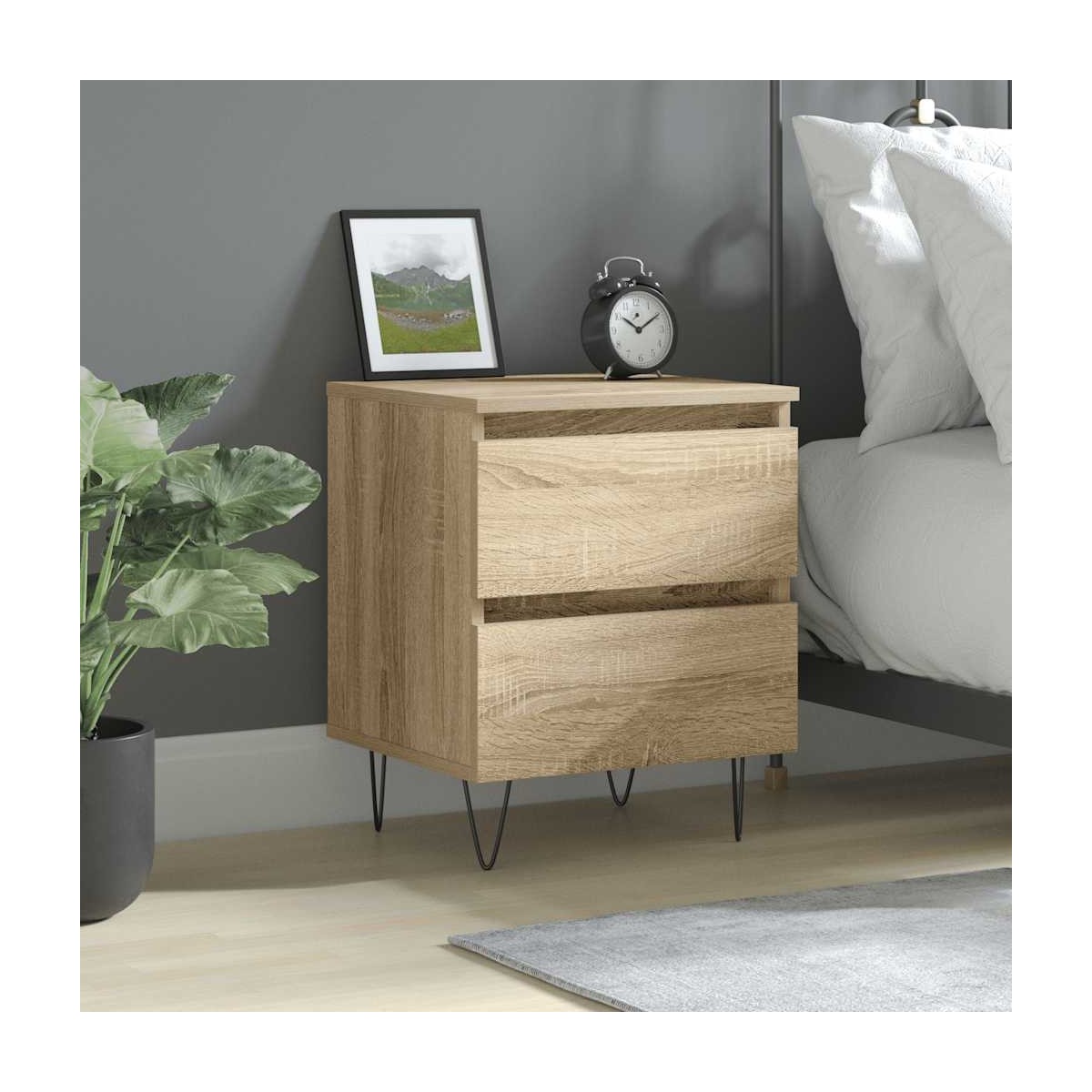 Esta mesita de noche, con un diseño elegante, es un aporte atemporal para la decoración de tu hogar. Material duradero: La madera de ingeniería es de una buena calidad con superficie lisa y también se caracteriza por su fuerza, estabilidad y resistencia a la humedad. Hecha de madera de ingeniería, la mesita de noche es fácil de limpiar con un paño húmedo.Amplio espacio de almacenaje: Equipada con 2 cajones, esta mesita de noche ofrece un práctico espacio de almacenaje para guardar bien organizados y al alcance de la mano revistas, libros, mandos a distancia y otros objetos pequeños.Superficie estable: La estable superficie de la mesita de noche se puede usar para colocar objetos decorativos como marcos de fotos y plantas. Advertencia:Para evitar que vuelque, este producto debe usarse con el dispositivo de fijación a la pared incluido.