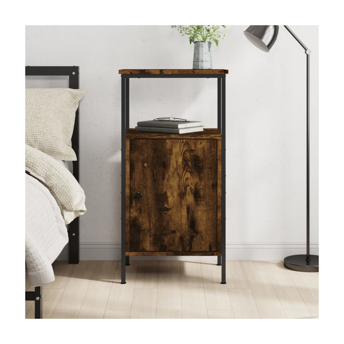 Esta mesita de noche con un diseño industrial es un complemento atemporal para la decoración de la casa. Material duradero: La madera contrachapada tiene una calidad excepcional, con una superficie lisa y también cuenta con fuerza, estabilidad y resistencia a la humedad.Estructura robusta: La estructura de hierro de la mesita de noche garantiza su solidez y estabilidad.Amplio espacio de almacenaje: La mesita de noche ofrece un amplio espacio de almacenaje para mantener tus artículos de uso diario bien organizados y al alcance.Patas regulables: El mueble auxiliar está equipado con 4 patas regulables que protegen el suelo de los arañazos y lo mantienen estable en suelo irregular.Función expositora: Puedes colocar tus fotos favoritas, adornos o flores en la superficie de esta mesita de noche para alegrarte la vida. Advertencia:Para evitar que vuelque, este producto debe usarse con el dispositivo de fijación a la pared incluido.