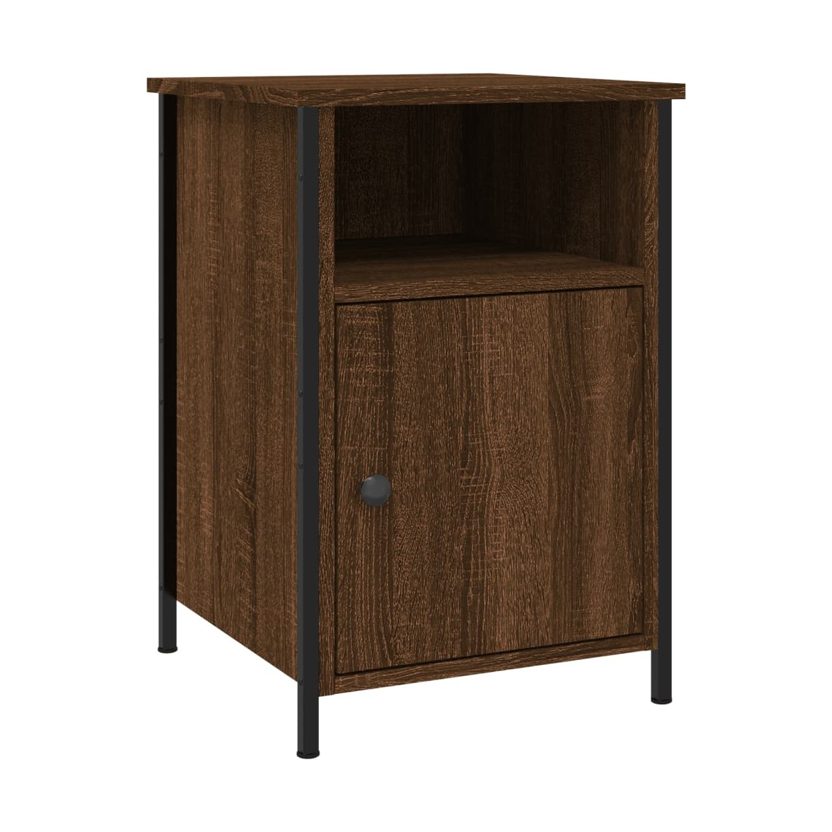Esta mesita de noche, con un diseño elegante, es un aporte atemporal para la decoración de tu hogar. Material duradero: La madera contrachapada tiene una calidad excepcional, con una superficie lisa y también cuenta con fuerza, estabilidad y resistencia a la humedad.Amplio espacio de almacenaje: El armario ofrece un amplio espacio de almacenamiento para mantener tus diversos artículos de uso diario bien organizados y al alcance.Tornillo regulable: Puedes ajustar la altura del tornillo negro de las patas con el fin de mantener estable la mesita de noche sobre suelos irregulares.Estructura robusta: Las estructuras de hierro garantizan la robustez y estabilidad del mueble auxiliar.Función expositora: También puedes colocar tus fotos favoritas, adornos o flores en la superficie de esta mesita de noche para alegrarte la vida. Advertencia:Para evitar que vuelque, este producto debe usarse con el dispositivo de fijación a la pared incluido.