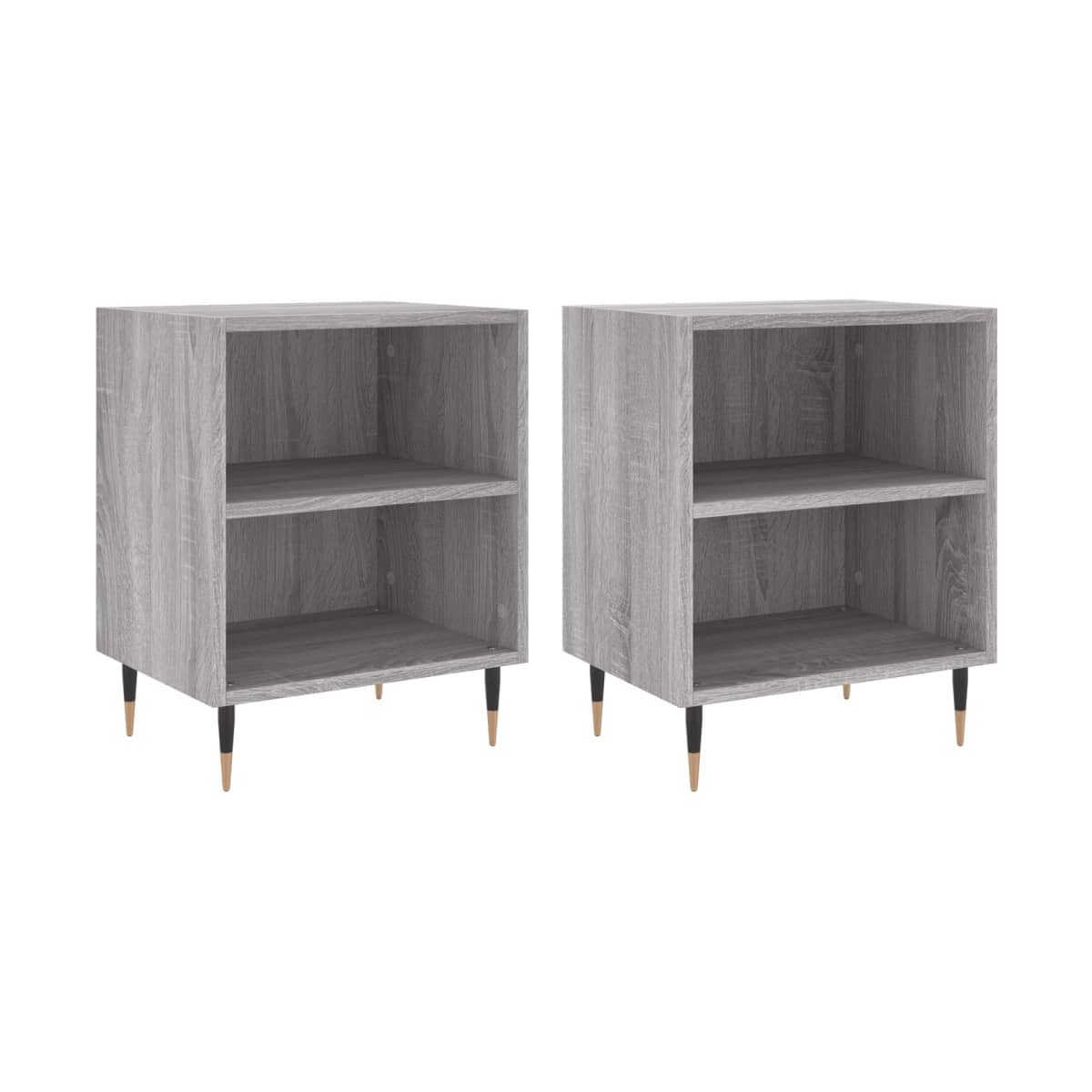 Estas mesitas de noche, con un diseño elegante, son un aporte atemporal para la decoración de tu hogar. Material duradero: La madera de ingeniería es de una buena calidad con superficie lisa y también se caracteriza por su fuerza, estabilidad y resistencia a la humedad. Hecha de madera de ingeniería, la mesita de noche es fácil de limpiar con un paño húmedo.Amplio espacio de almacenaje: Con 2 compartimentos, la mesita de noche ofrece un práctico espacio de almacenaje para mantener bien organizados y al alcance revistas, libros, mandos a distancia y otros artículos pequeños.Superficie estable: La estable superficie de la mesita de noche se puede usar para colocar objetos decorativos como marcos de fotos y plantas. Advertencia:Para evitar que vuelque, este producto debe usarse con el dispositivo de fijación a la pared incluido.