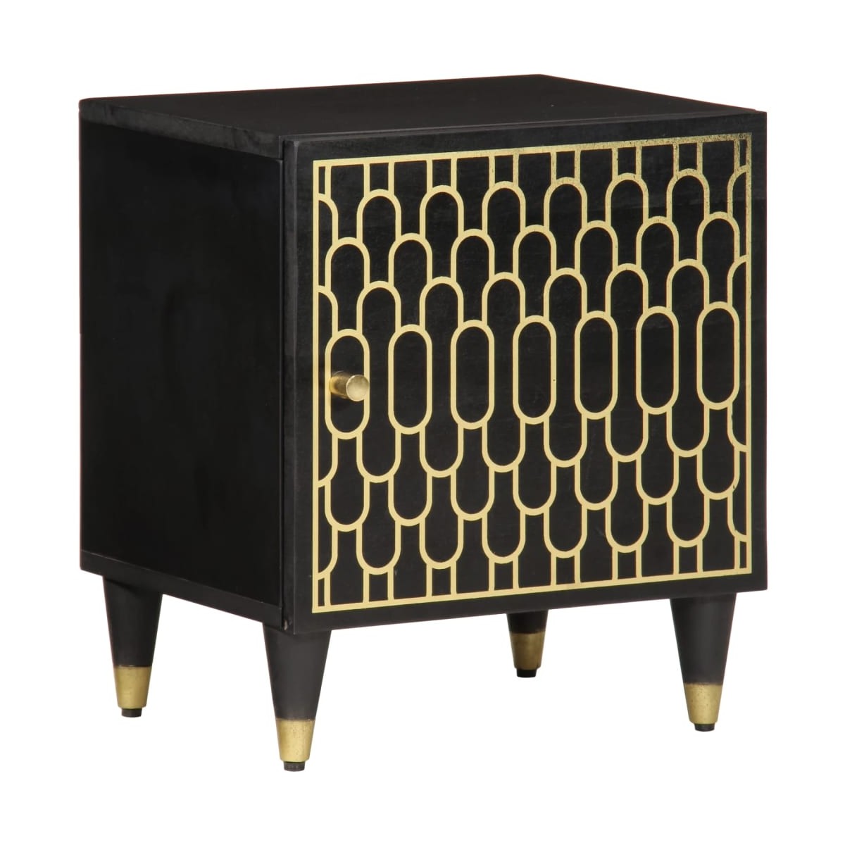 Esta mesita de noche, con un diseño retro, es un aporte atemporal para la decoración de tu hogar. Madera maciza de mango: La madera maciza de mango es una madera dura, tropical y resistente, que sirve para fabricar muebles robustos. Las bonitas vetas de la madera hacen que cada mueble sea ligeramente diferente al resto. Hecho de madera maciza de mango, el mueble es duradero y estable.Puerta práctica: Mantén tu espacio ordenado ocultando pequeños elementos esenciales detrás de la puerta de la mesita de noche.Superficie estable: La superficie de este mueble auxiliar es perfecta para exponer objetos decorativos, marcos de fotos y plantas.Patas resistentes: Las patas de hierro aumentan la robustez y estabilidad de los muebles del dormitorio.Estilo retro: Esta mesita de noche con motivos florales tallados a mano aporta el lujo del estilo retro a tu decoración, siendo el foco de atención de tu habitación. Recomendaciones:Cada artículo es único, con variaciones de color y veta. La entrega es aleatoria garantizando la exclusividad y la individualidad del producto.