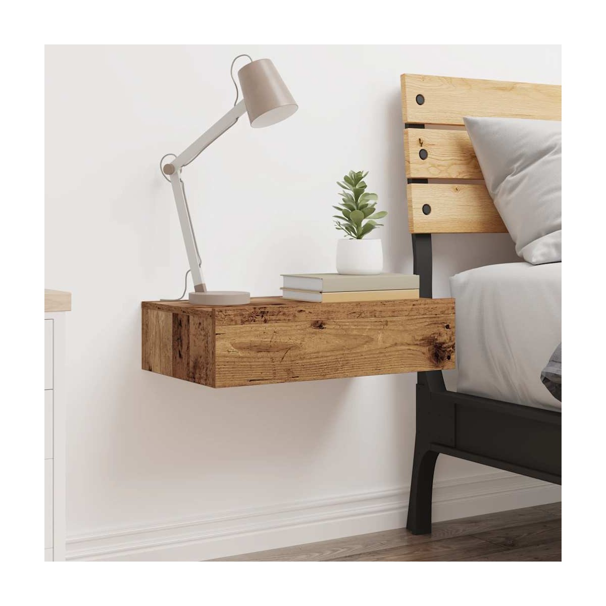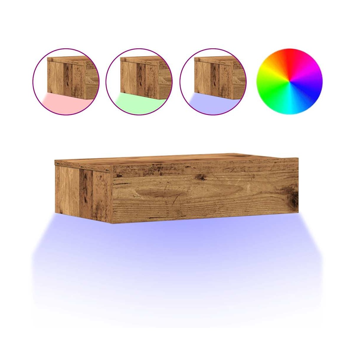 ¡Mejora tu dormitorio con estas mesitas de noche montadas en la pared con luces LED! ¡Complementan fácilmente cualquier estilo de muebles de tu hogar! Material estable y duradero: La madera de ingeniería es un material duradero y estable con una superficie lisa que es resistente a la humedad, la deformación y la rotura, lo que la convierte en una opción fiable para una variedad de proyectos.Amplio espacio de almacenamiento: La mesilla de noche ofrece un amplio espacio de almacenamiento para revistas, libros, gafas y otros objetos esenciales para la hora de dormir, manteniéndolos organizados y al alcance de la mano.Luces LED RGB para un ambiente agradable: las luces LED se pueden ajustar fácilmente para crear un espectáculo de luces personalizado. Puedes personalizar los modos, los colores y el brillo para mejorar el ambiente de tu espacio interior.Diseño de pared: La mesita de noche flotante se puede montar en la pared para agregar espacio de almacenamiento adicional. De esa forma, puedes liberar espacio en el piso y tener tu ambiente ordenado y limpio.Fácil de mantener: Gracias a su superficie lisa, la mesita de noche es fácil de limpiar con un paño húmedo y requiere menos mantenimiento. Información útil:Los tornillos y los tacos para el interior de la pared no están incluidos. Recomendamos encontrar y utilizar tornillos y tacos adecuados específicamente para las paredes. Si no estás seguro, puedes consultar con un profesional. Lee y sigue cada paso de las instrucciones.El producto tiene un conector USB que necesita una fuente de alimentación USB certificada de 5 V (no incluida).