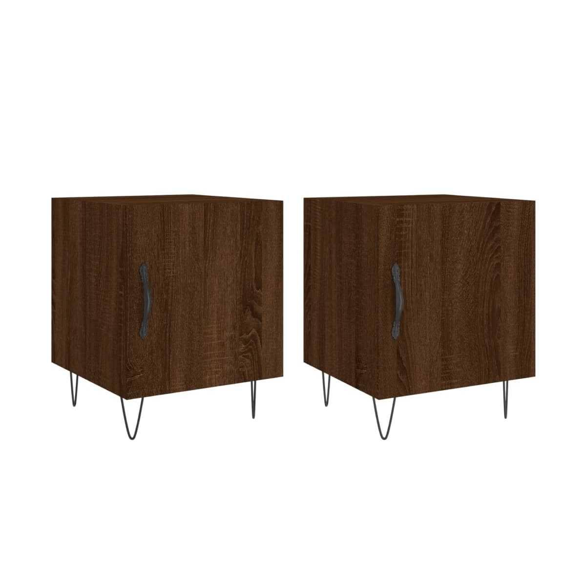 ¡Da un toque de encanto moderno a la casa con estas mesitas de noche! Material duradero: La madera de ingeniería tiene una calidad excepcional, con una superficie lisa y también cuenta con fuerza, estabilidad y resistencia a la humedad. Amplio espacio de almacenaje: La mesita de noche tiene un compartimento, por lo que ofrece un amplio espacio de almacenaje para mantener al alcance libros, aparatos multimedia y otros objetos.Función expositora: También puedes colocar tus fotos favoritas, adornos o flores en la superficie de esta mesita auxiliar para alegrarte la vida. Patas de metal: Las patas metálicas añaden un estilo tranquilo a la casa a la vez que garantizan la estabilidad.Práctica puerta: Mantén tus cosas libres de polvo ocultándolas detrás de la puerta. Advertencia: Para evitar que vuelque, este producto debe usarse con el dispositivo de fijación a la pared incluido.