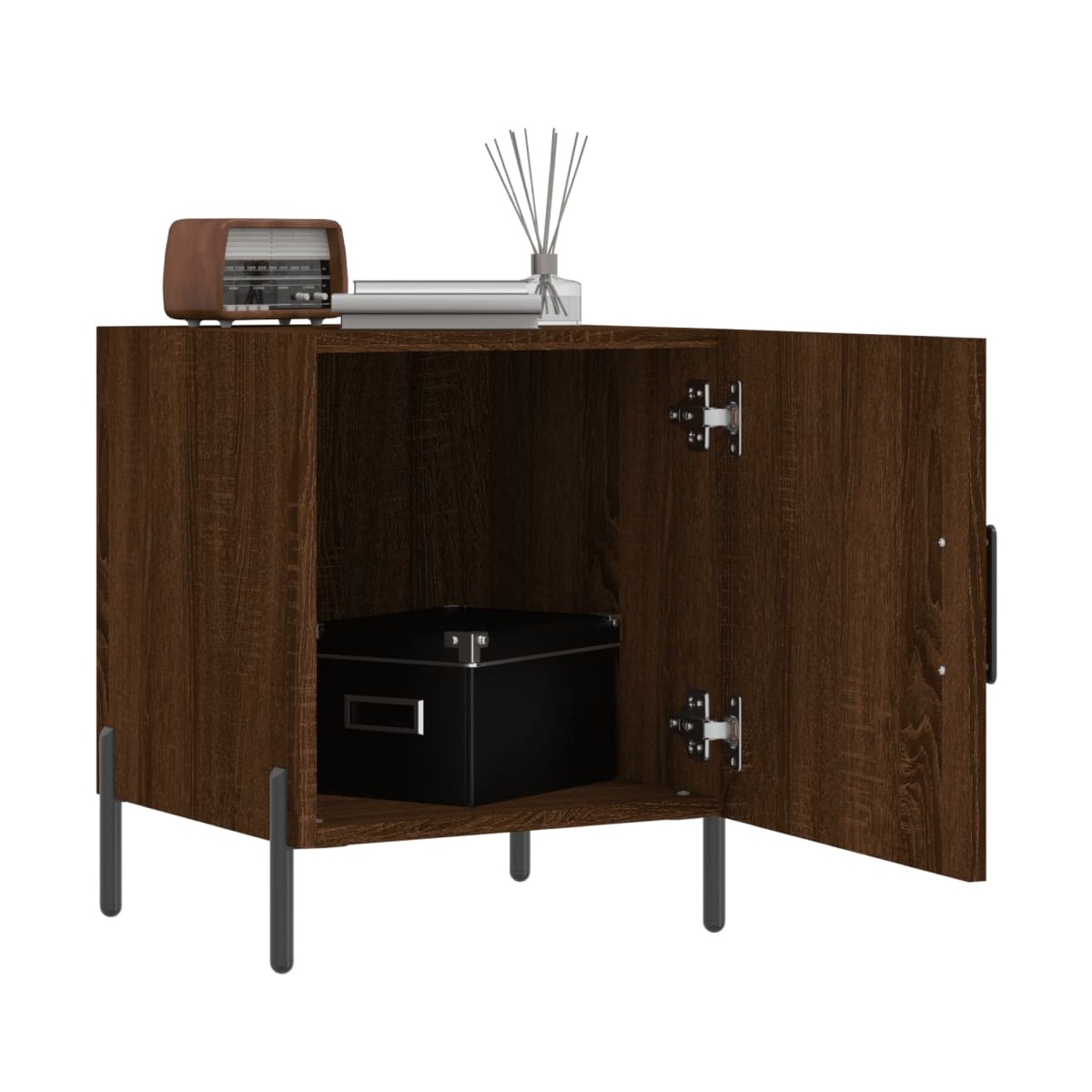 ¡Da un toque de encanto moderno a la casa con esta mesita de noche! Material duradero: La madera de ingeniería tiene una calidad excepcional, con una superficie lisa y también cuenta con fuerza, estabilidad y resistencia a la humedad. Amplio espacio de almacenaje: La mesita de noche tiene un compartimento, por lo que ofrece un amplio espacio de almacenaje para mantener al alcance libros, aparatos multimedia y otros objetos.Función expositora: También puedes colocar tus fotos favoritas, adornos o flores en la superficie de esta mesita auxiliar para alegrarte la vida. Patas de metal: Las patas metálicas añaden un estilo tranquilo a la casa a la vez que garantizan la estabilidad.Práctica puerta: Mantén tus cosas libres de polvo ocultándolas detrás de la puerta. Advertencia: Para evitar que vuelque, este producto debe usarse con el dispositivo de fijación a la pared incluido.