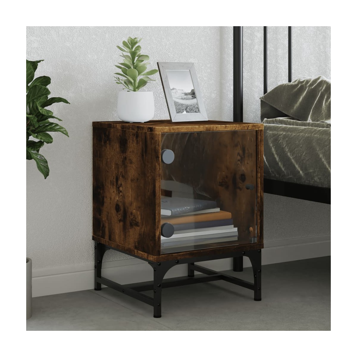 Estas modernas mesitas de noche, con un diseño elegante, son un aporte atemporal para la decoración de la casa. Material duradero: La madera de ingeniería tiene una calidad excepcional, con una superficie lisa y también cuenta con fuerza, estabilidad y resistencia a la humedad.Amplio espacio de almacenaje: Estas mesitas de noche ofrecen un práctico espacio de almacenaje para guardar bien organizados y al alcance revistas, mandos a distancia y otros objetos pequeños.Superficie estable: Las mesitas de noche cuentan con una superficie estable que puede ser utilizada para colocar lámparas de mesa, libros, etc.Prácticas puertas de vidrio: Mantén tu espacio despejado guardando los pequeños objetos esenciales detrás de las puertas de mueble de dormitorio. Además, las puertas de vidrio te permiten ver el interior de las mesitas de noche para exponer los objetos de forma bonita.