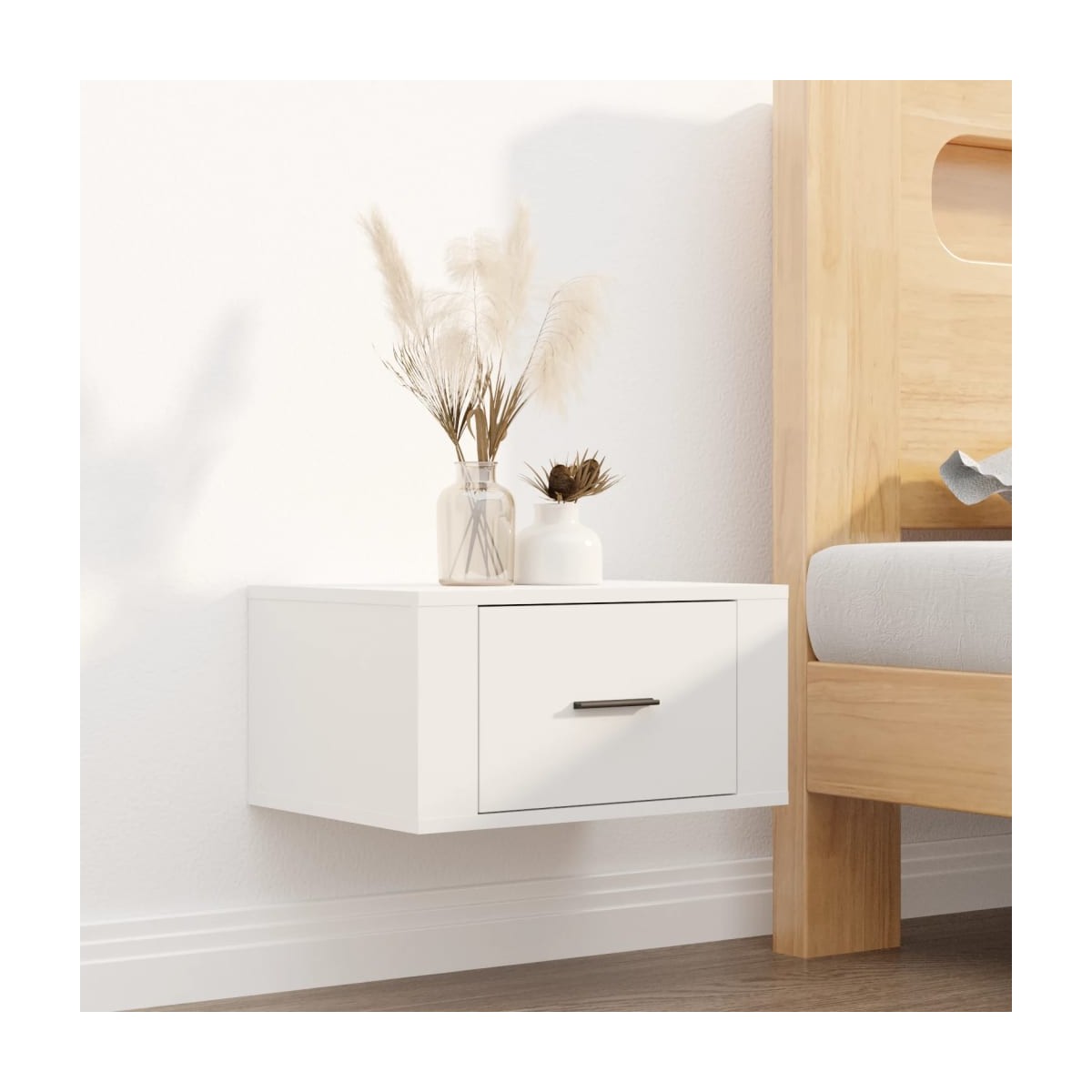 Estas mesita de noche de pared, con un diseño elegante, son un aporte atemporal para la decoración de la casa. Material duradero: La madera contrachapada tiene una calidad excepcional, con una superficie lisa y también cuenta con fuerza, estabilidad y resistencia a la humedad. Amplio espacio de almacenamiento: Estas mesitas de noche flotantes ofrecen suficiente espacio para que tengas las cosas organizadas y al alcance. Montaje en la pared: Estas mesita de noche flotantes no ocupan espacio en el suelo. Puedes colgarlas en la pared fácilmente.Superficie robusta: La superficie de esta mesita de noche de pared es perfecta para exponer objetos decorativos, marcos de fotos y plantas. Nota:Los tornillos y los tacos para el interior de la pared no están incluidos. Busca y utiliza tornillos y tacos adecuados para tus paredes. Si no lo tienes claro, busca asesoramiento profesional. Lee y sigue cada paso de las instrucciones cuidadosamente.Cada producto viene con un manual de montaje en la caja para facilitar el montaje.