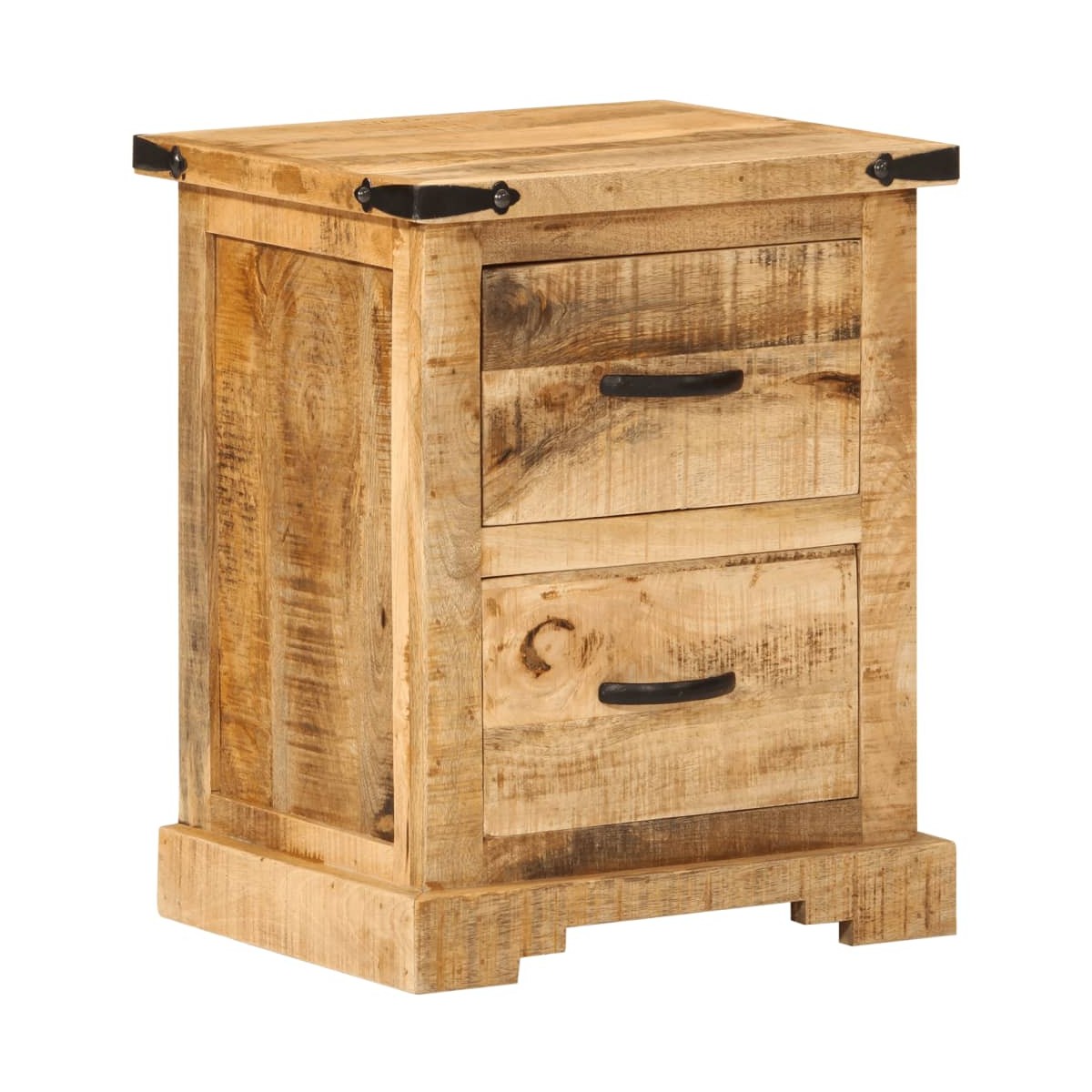 Esta mesita de noche, con un diseño elegante, es un aporte atemporal para la decoración de tu hogar. Madera maciza de mango: La madera maciza de mango es una madera dura, tropical y resistente, que sirve para fabricar muebles robustos. Las bonitas vetas de la madera hacen que cada mueble sea ligeramente diferente al resto. Hecho de madera maciza de mango, el mueble es duradero y estable.Amplio espacio de almacenamiento: La mesita de noche está diseñada con 2 cajones para mantener las cosas organizadas y al alcance de la mano.Superficie estable y robusta: La superficie de este mueble auxiliar es perfecta para exponer objetos decorativos, marcos de fotos y plantas.